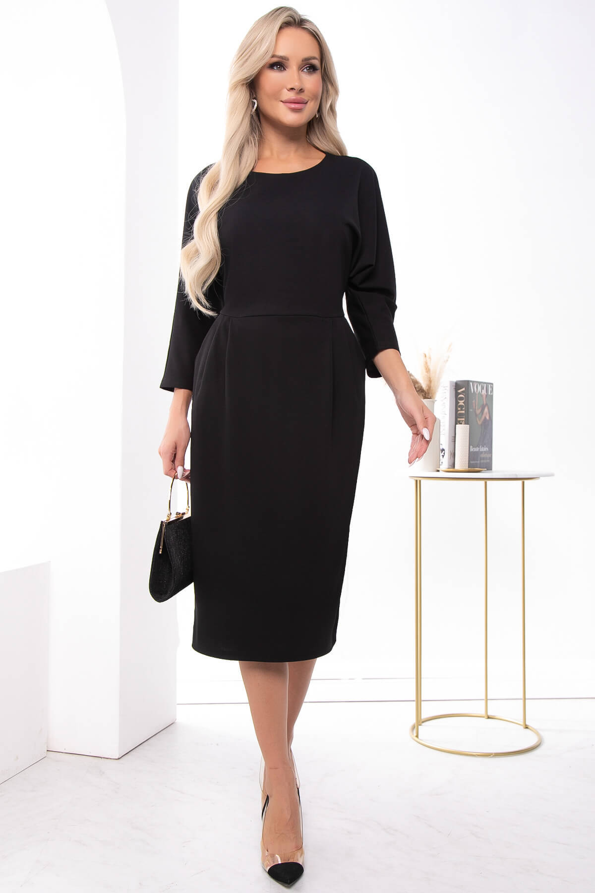 Восхитительное платье длины миди в базовом чёрном оттенке. Идеально подойдет на каждый день, но, добавив в образ яркие аксессуары, Вы сможете затмить окружающих своей красотой и элегантностью на любом вечернем мероприятии.
