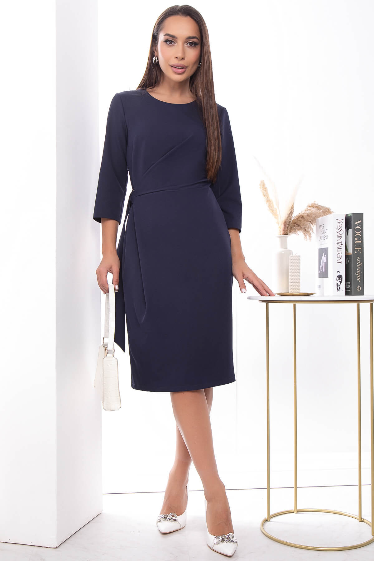 Элегантное платье с имитацией запаха подчеркнёт хороший вкус своей обладательницы. Ведь классика делового образа - лаконичность дизайна, гармоничный оттенок и идеальная посадка по фигуре. При помощи вшитого пояса формируется линия талии и создаётся имитация запаха. Комфортная длина рукава - три четверти. Сзади на юбке есть разрез.