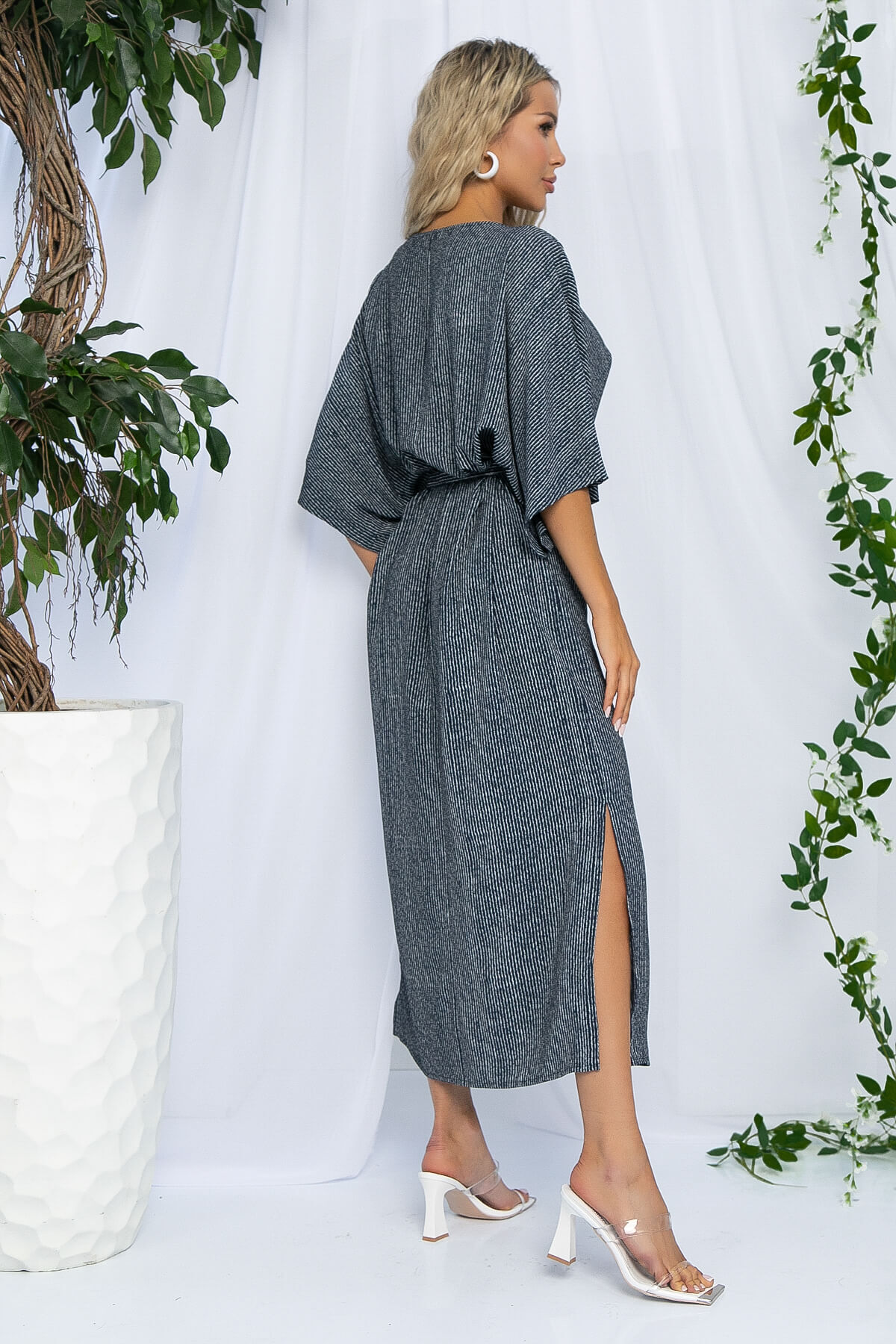 Создайте свой идеальный летний образ с этим платьем! Платье с принтом в полоску и современным кроем станет вашим верным спутником в жаркие дни. Оно не только стильно выглядит, но и обеспечивает комфорт благодаря цельнокроеным спущенным рукавам и разрезам по бокам. Пояс на талии вшитый по бокам, подчеркнет вашу индивидуальность и придаст образу завершенность.
