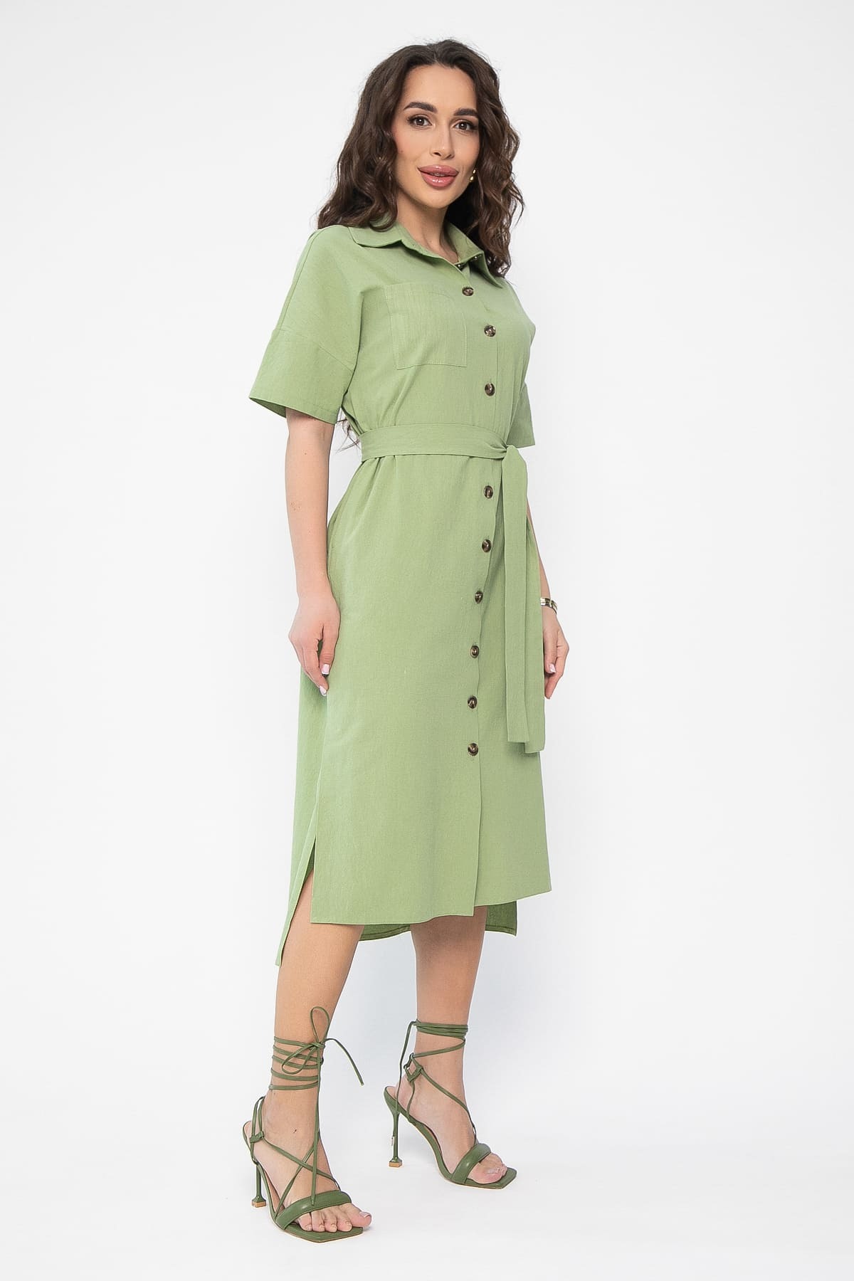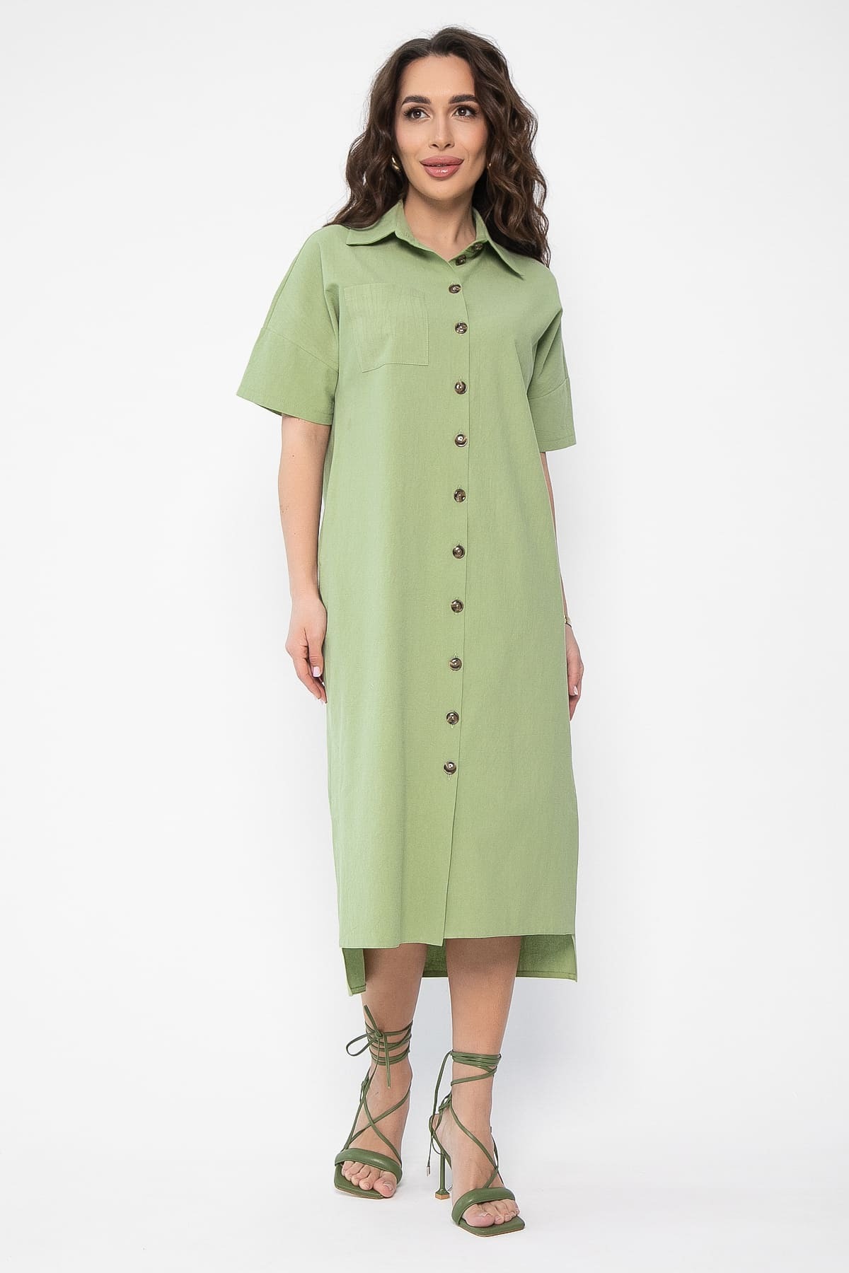 Создайте легкий и стильный образ с помощью нашего платья-рубашки! Эта модель прямого кроя средней длины станет универсальным элементом вашего гардероба. Оригинальный асимметричный крой с более коротким передним полотнищем добавляет образу изюминку и динамику. Спущенное плечо и короткие рукава придают расслабленный вид. Классический воротник на стойке рубашечного типа переходит в планку, подчеркивающую элегантность модели. Удобная застежка на пуговицах по всей длине платья обеспечивает комфорт. Потайные карманы по бокам и накладной карман с одной стороны добавляют функциональности. В комплекте идет пояс из основной ткани, который позволяет подчеркнуть талию и создать более женственный силуэт.