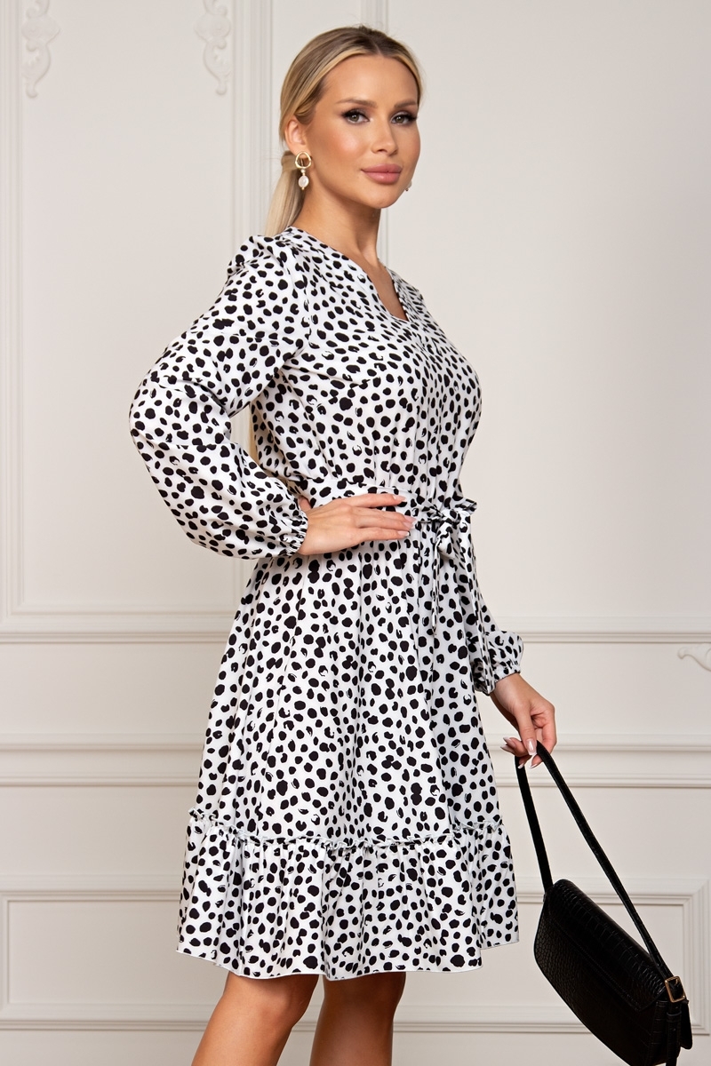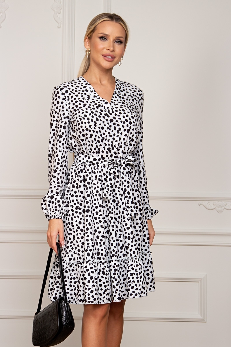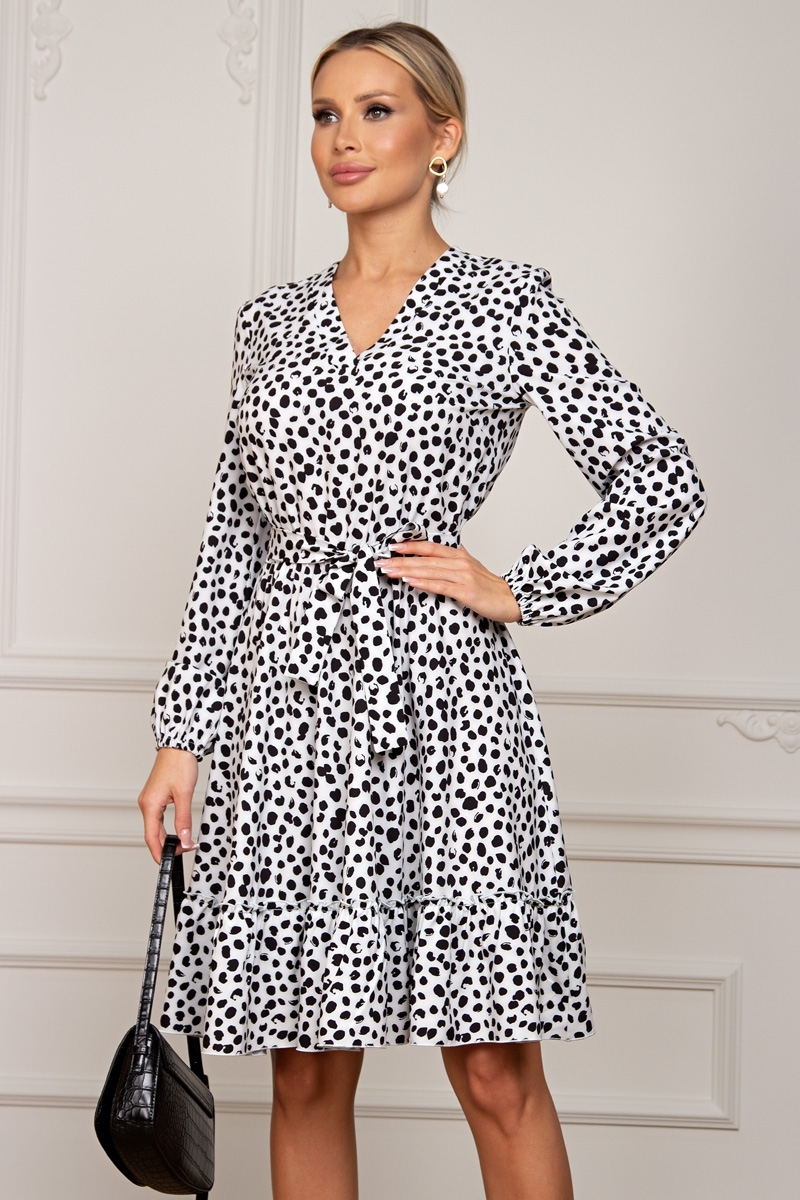 Красивое платье из легкой ткани - Ниагара. Модель отрезная по линии талии, присборена на резинку. V - образная горловина на внутренней обтачке. Длинный втачной рукав присборен на резинку. По низу притачной волан на сборке. Легкое и воздушное платье подойдет для прогулок и приятных встреч.