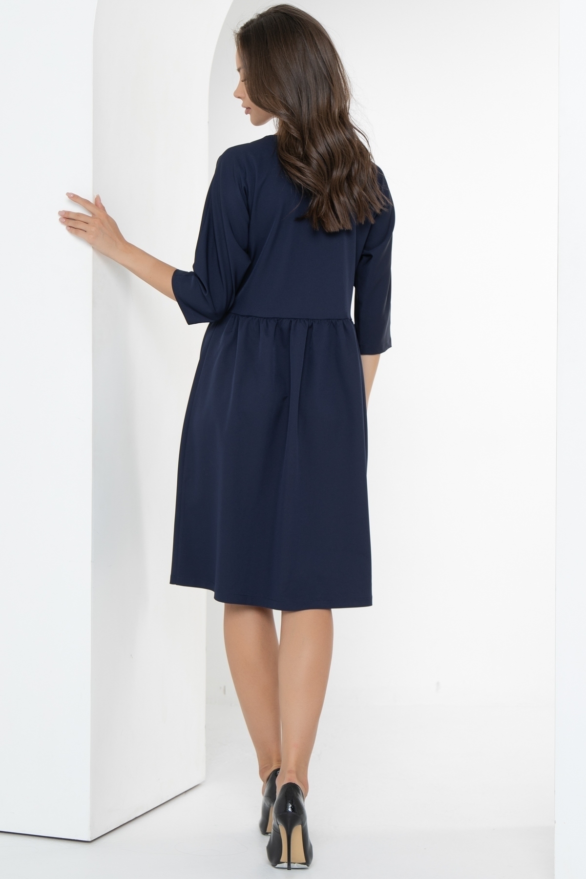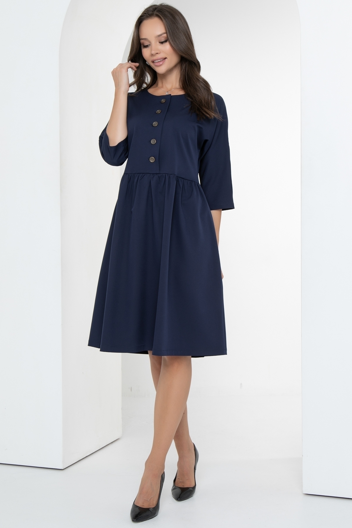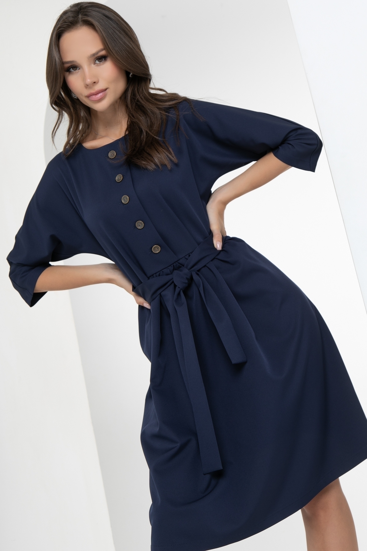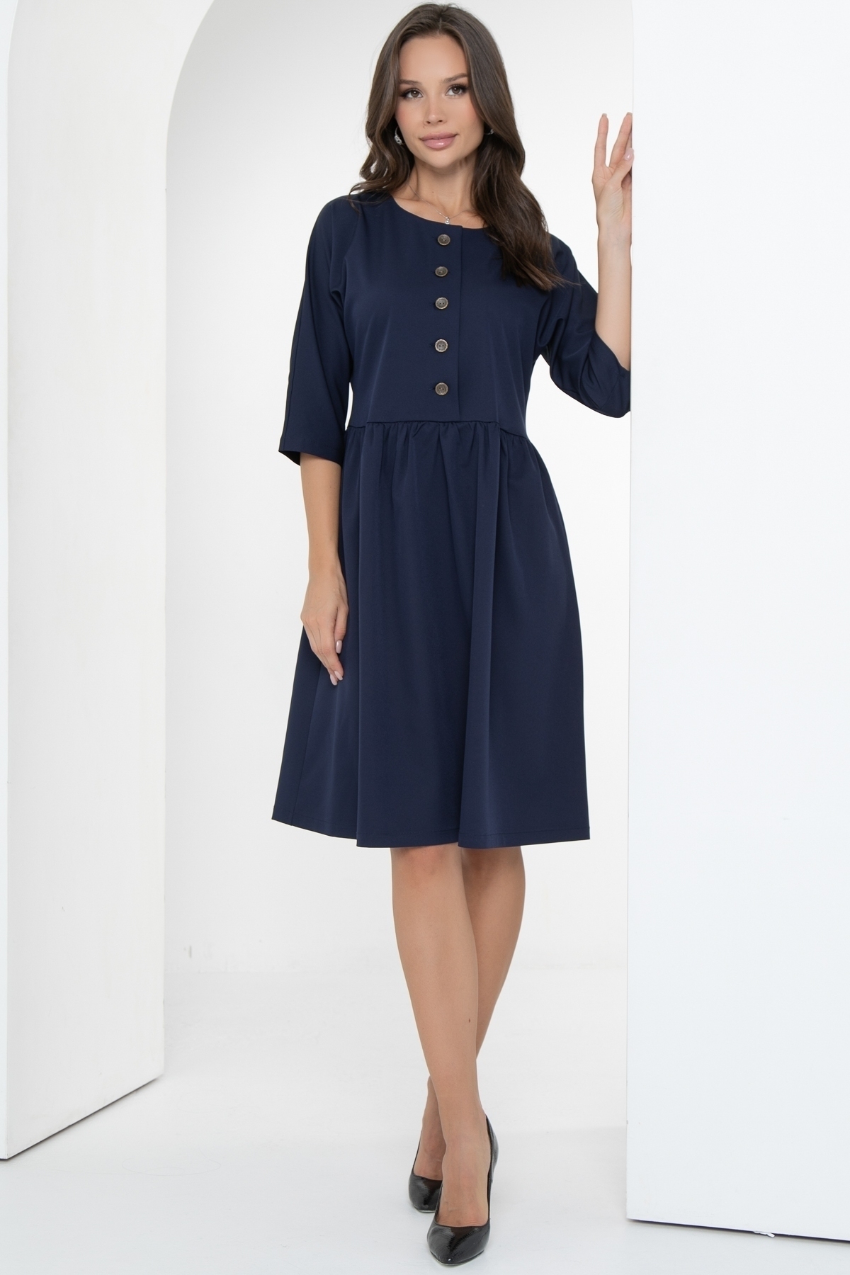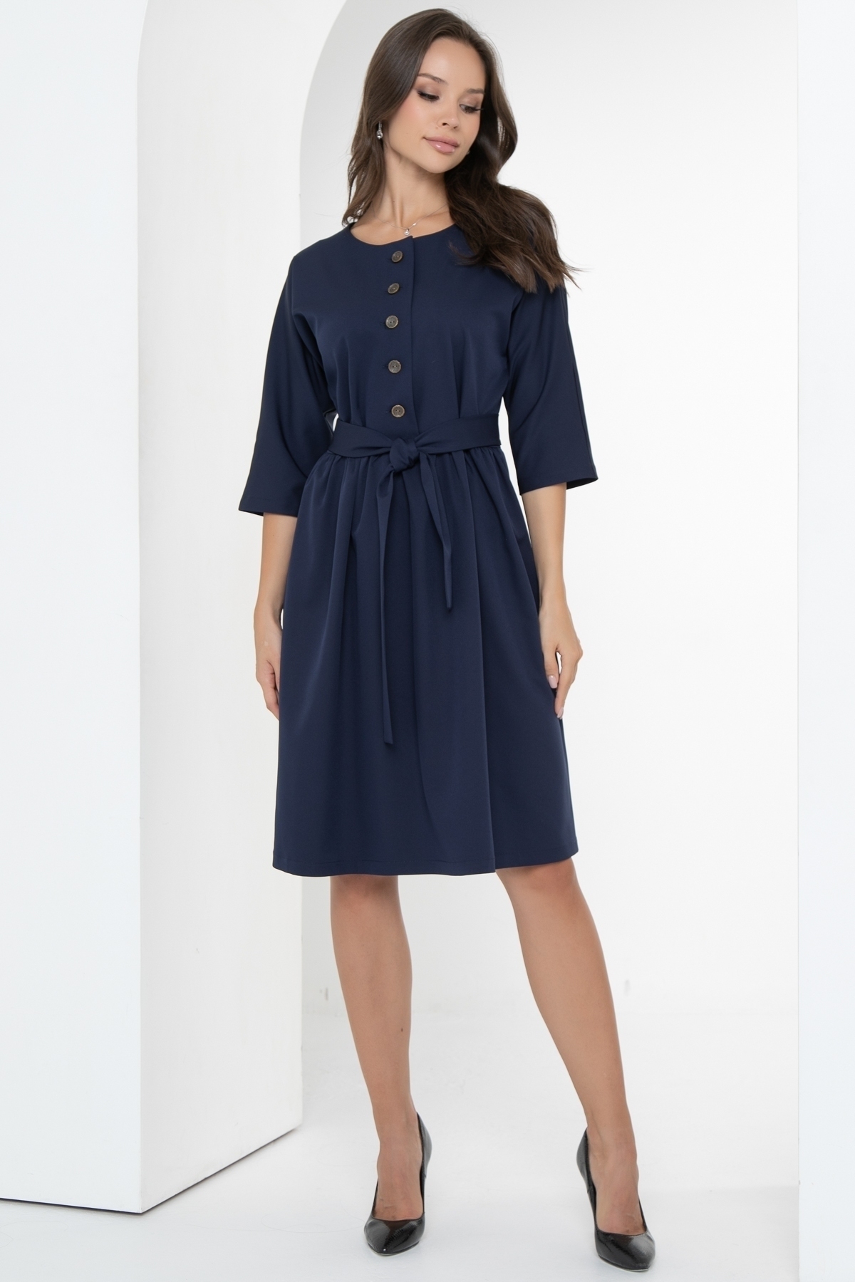 Модель выполнена из вискозной плательной ткани. Состав: 60% вискоза, 35% полиэстер, 5% эластан. Элегантное платье расклешенного силуэта невероятно модного оттенка. Дизайнеры Diolche создали великолепное платье на любую фигуру. Это платье очень комфортное, свободный крой и приятная ткань обеспечивает хорошую посадку по фигуре. Платье отрезное по линии талии, вертикальная застежка на пуговицы визуально делает фигуру выше. Рукава свободные, длина 3/4. Платье дополняется поясом из основной ткани. Длина изделия: 46р-104см, 48р-105см, 50р-106см,52р-107см