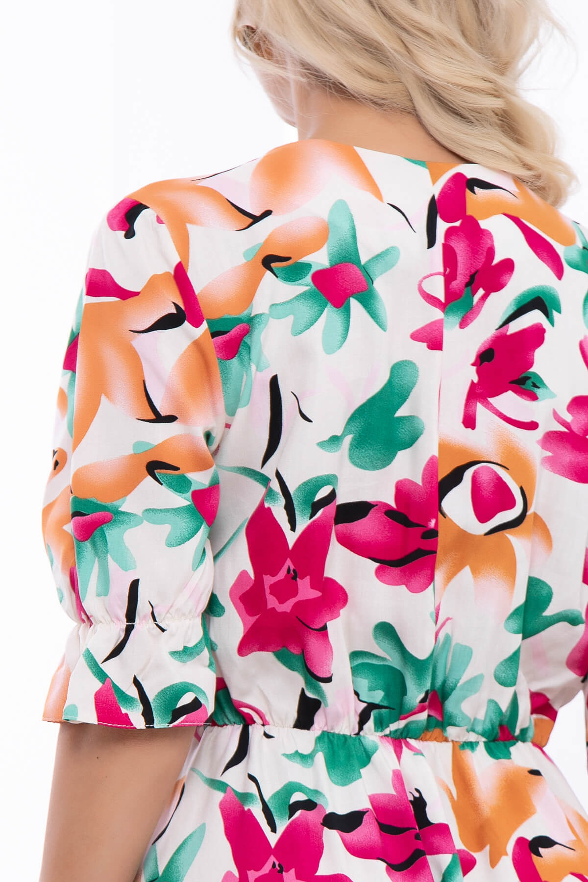 Платья с ярким принтом на пике популярности! В таком платье вы будете чувствовать себя привлекательно и женственно. Рукав укороченный, украшен рюшей. По талии на резинке. Такое платье отлично подойдет как на прогулку, так и на торжественное мероприятие. В любом случае, вы будете чувствовать себя роскошно!