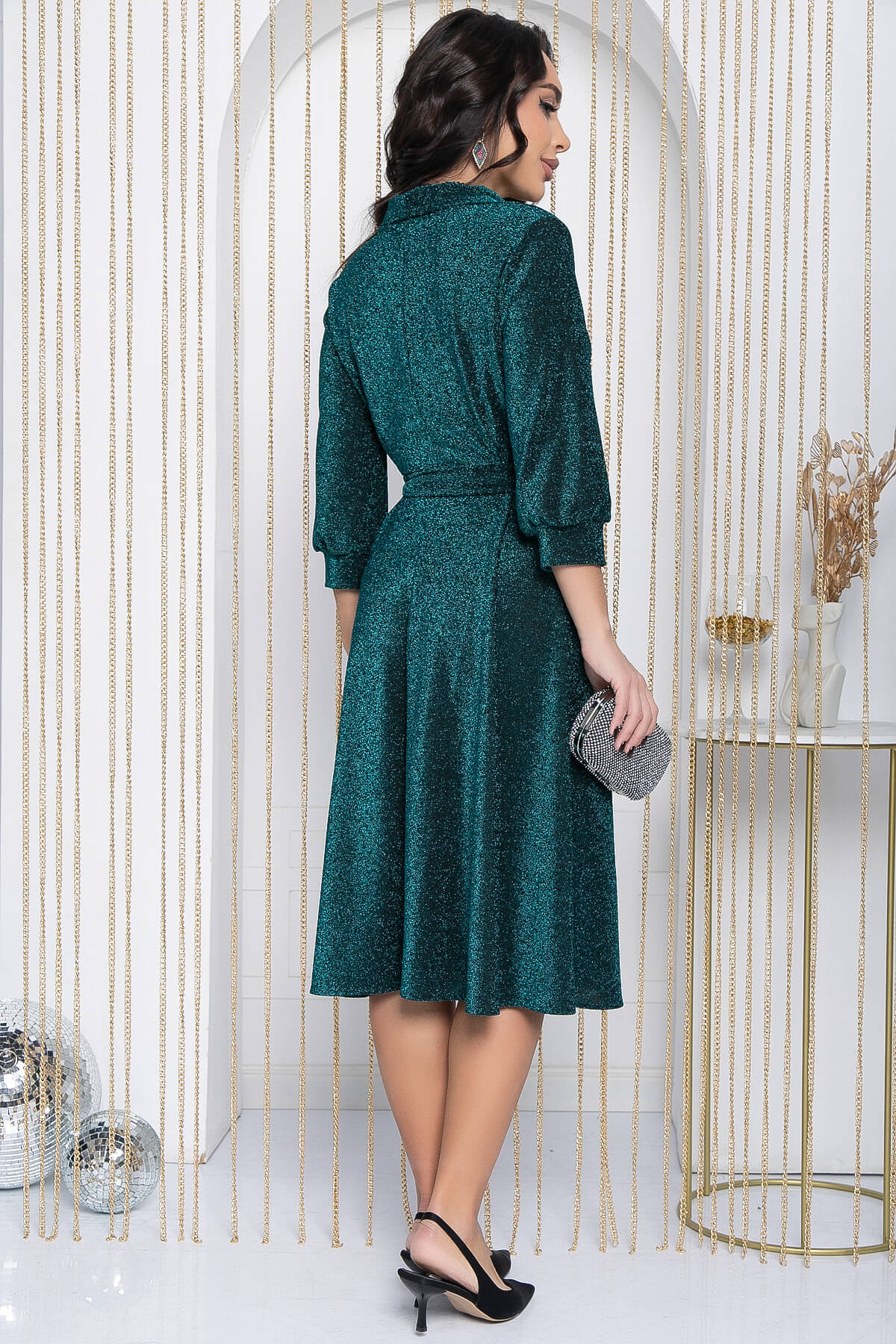 Идеальное платье — это не просто наряд, это целый мир, где женщина чувствует себя настоящей королевой. Это поистине праздничное платье, которое восхищает своим уникальным дизайном и стилем. Посадка изделия безупречна, она подчеркивает достоинства фигуры и скрывает недостатки. Верхняя часть платья выполнена на запах, а в комплекте идёт пояс из той же ткани, что и само платье. Талия отрезная.