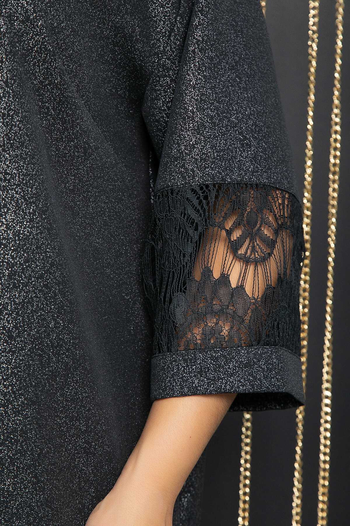 Позвольте себе ощутить невероятную легкость с нашим потрясающим платьем свободного кроя! Этот наряд, созданный для максимального комфорта и свободы движений, станет вашим постоянным спутником, позволяя всегда выглядеть уверенно и стильно. Особой изюминкой этого платья является нежная кружевная отделка по рукаву и снизу платья, придающая ему романтический и утонченный вид. А благодаря округлой горловине и рюшам по низу изделия, платье приобретает игривый и женственный образ.