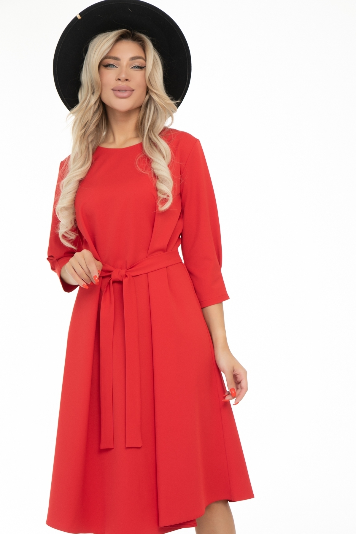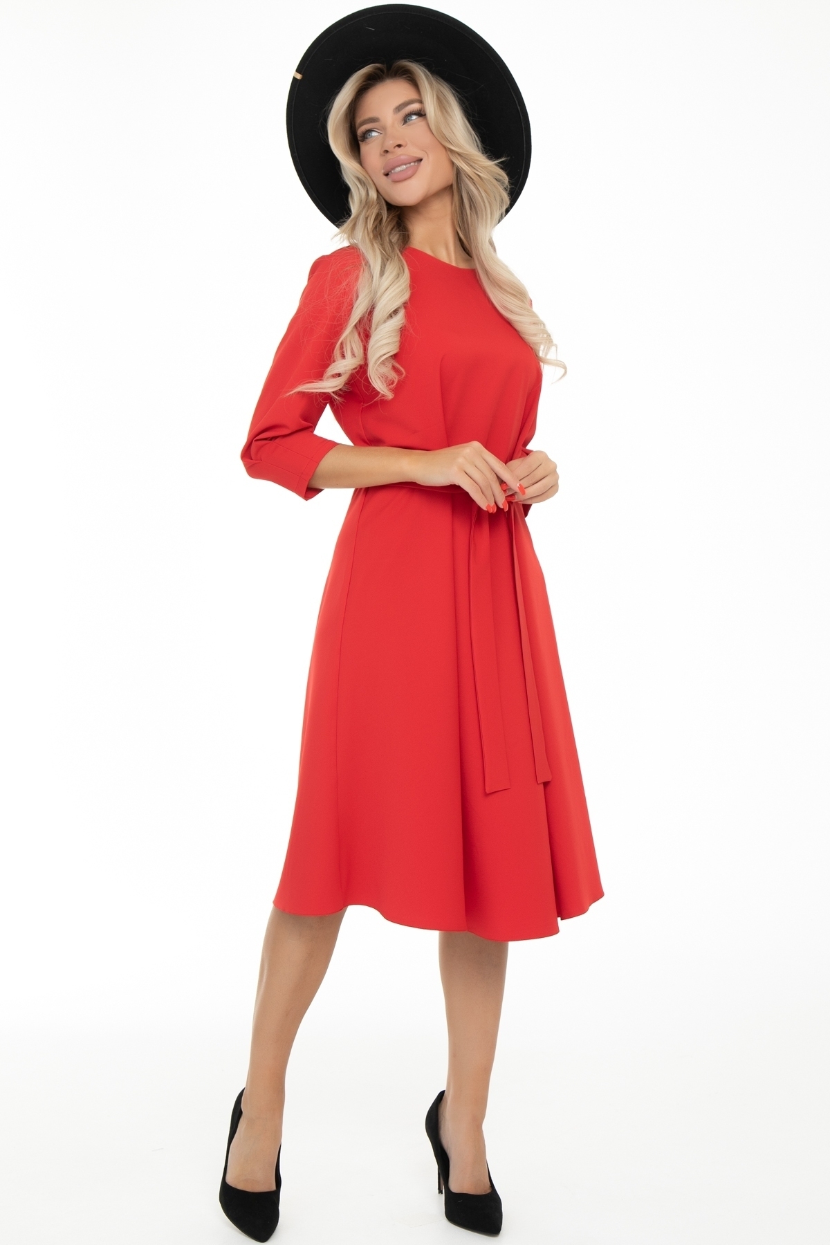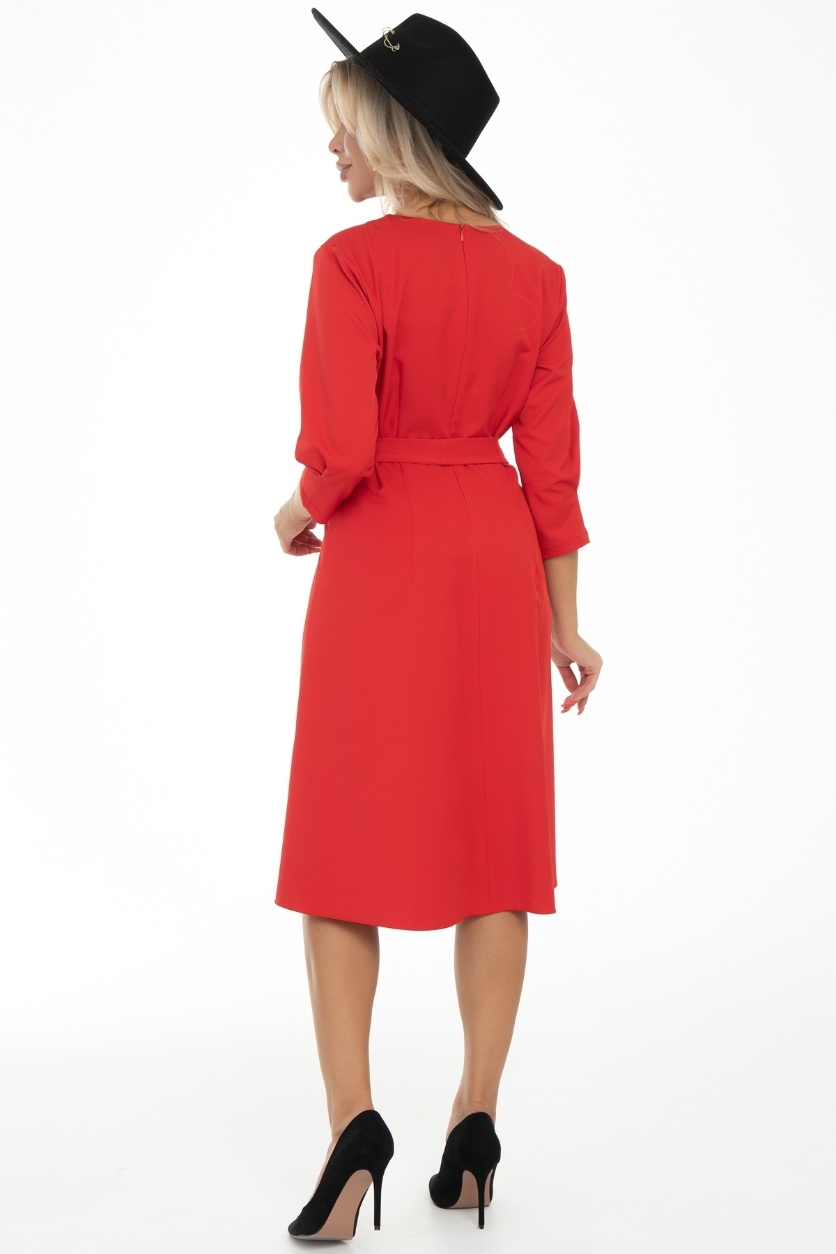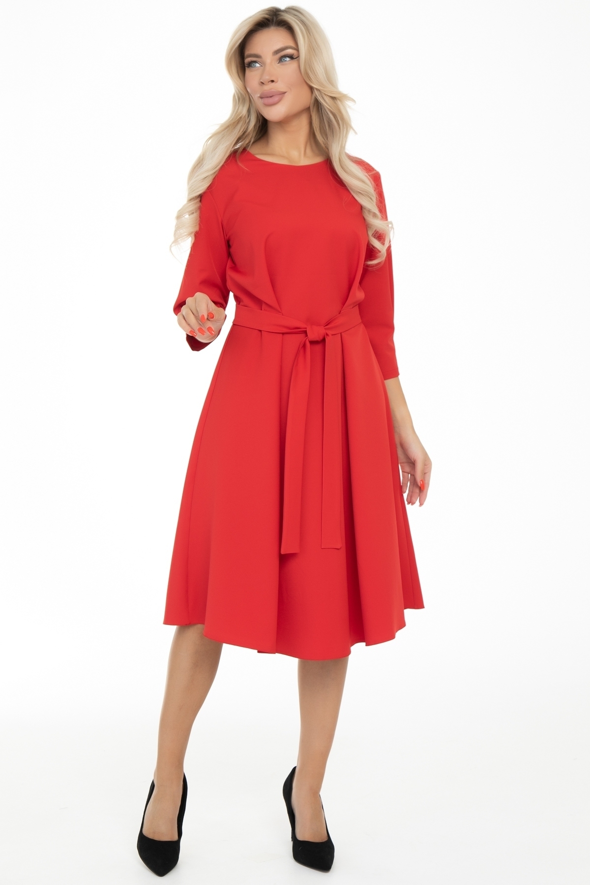 Элегантное платье свободного прилегания А-силуэта от бренда Diolche. Универсальное нарядное женское платье, которое одновременно и праздничное, и повседневное – непременно должно быть в базовом гардеробе каждой модницы. С помощью правильно подобранной обуви и аксессуаров, с ним можно составить огромное количество модных и оригинальных образов. Платье выгодно скрывает недостатки фигуры. Классическая модель с округлым вырезом горловины имеет сзади застежку на молнии, пышную юбку миди длины и пояс, подчеркивающий линию талии. Горловина обработана обтачкой. Рукава втачные, длина 3/4, внизу рукава сделаны две складки. По переду, немного выше талии, заложены красивые складки. Спинка со средним швом и небольшими вытачками приталевания. Дополняется поясом из основной ткани.