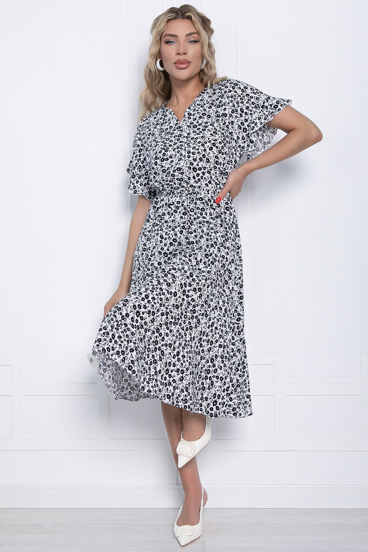 Шикарное платье с акцентными рукавами не оставит без внимания окружающих. Изделие украшает акцентный вырез по горловине. Рукав цельнокроенный с воланом по низу. Изделие отлично садится по фигуре благодаря вшитой резинке по линии талии. По низу изделия волан.