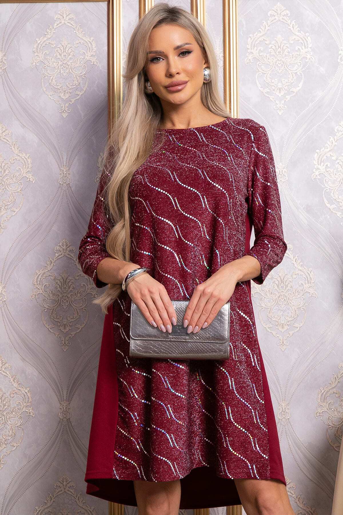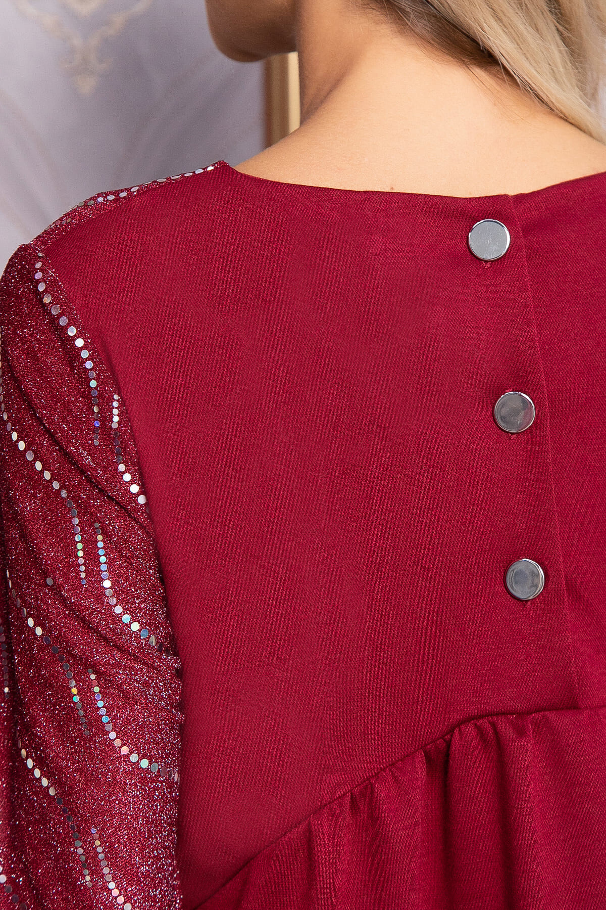 Наше стильное и красивое платье идеально подходит для любых торжественных мероприятий. Благодаря своему свободному крою оно сядет на любую фигуру. Оно подчеркнет вашу женственность и индивидуальность даже зимой. Вы сможете создать образы для разных случаев. Рукав втачной. Застежка на пуговицы расположена по спинке. Спинка платья трикотажная, скроена с фигурной кокеткой, от которой идет сборка. Низ платья асимметричный, по спинке чуть длиннее.