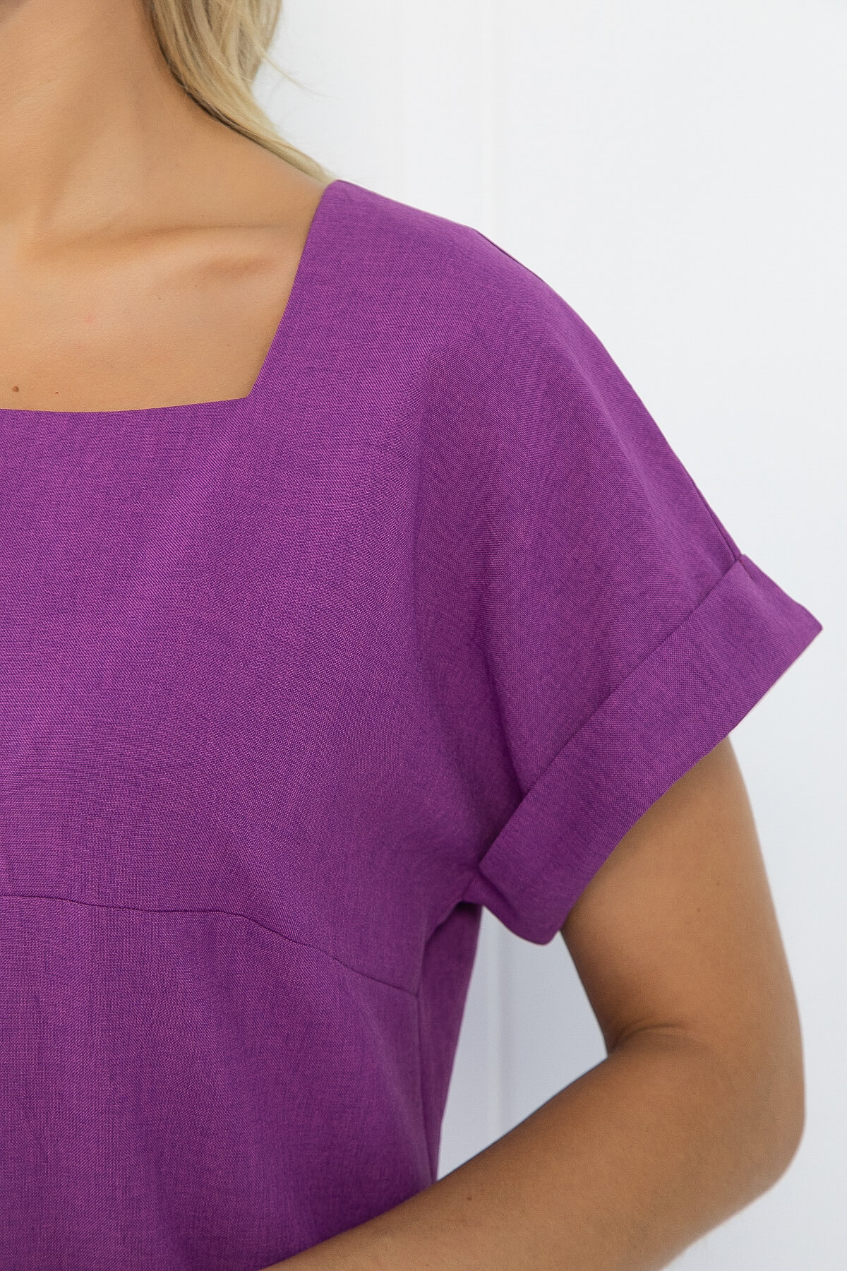 Яркое платье средней длины, сшитое из лёгкой ткани, станет незаменимым элементом вашего летнего гардероба! Благодаря своему крою оно идеально сидит на фигуре, подчеркивая все её достоинства. Спущенный рукав на манжете придаёт образу изысканность, а квадратный вырез на груди добавляет загадочности и привлекательности. В комплекте идёт пояс из той же ткани, который можно использовать, чтобы подчеркнуть талию и сделать образ более гармоничным.