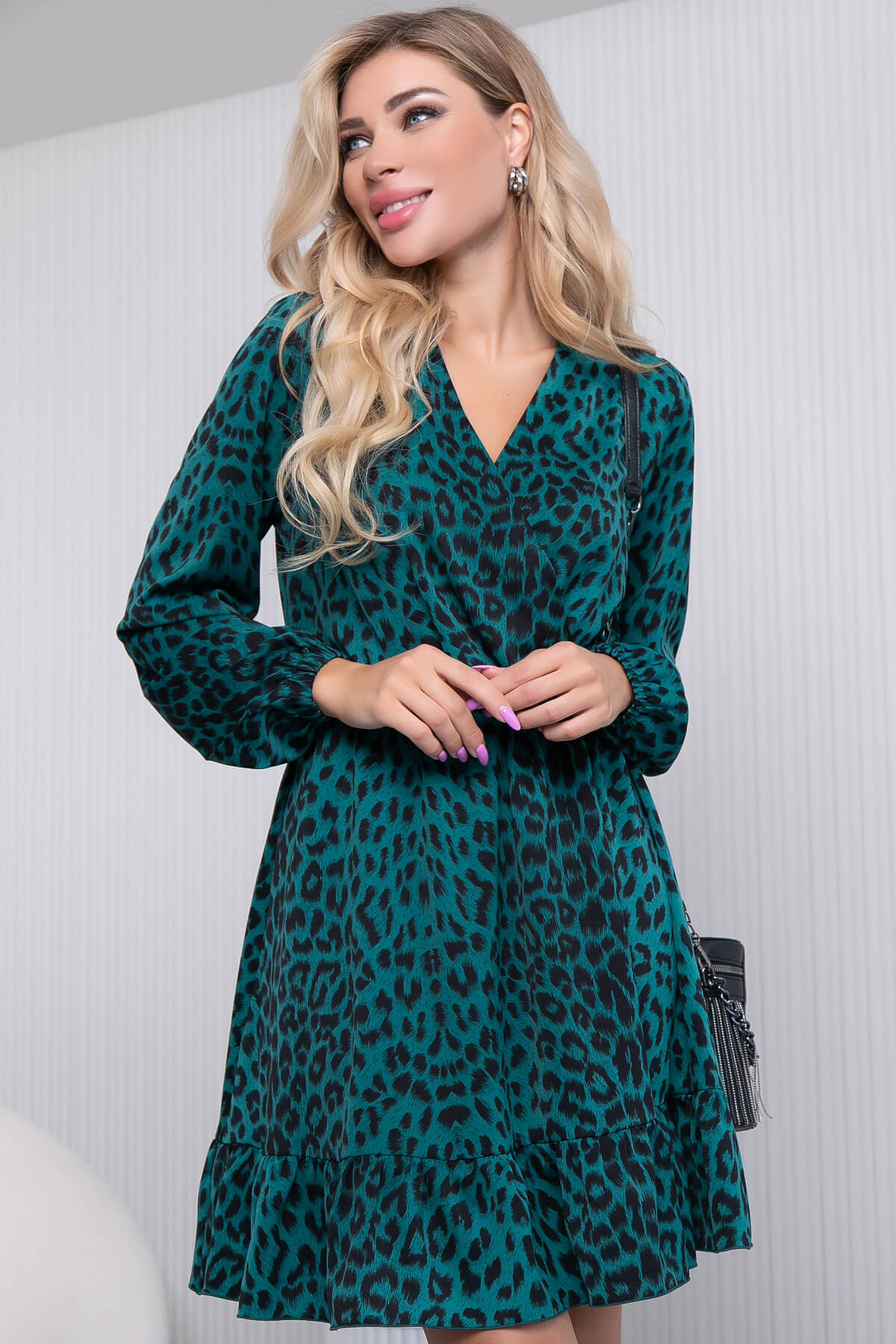 Невероятно стильное платье не оставит вас равнодушным! Оно собрало все элементы женственности. Изделие украшает V-образный вырез с имитацией запаха. Рукав длинный, по низу на резинке. В комплект входит ремень, который отлично подчеркнет линию талии!