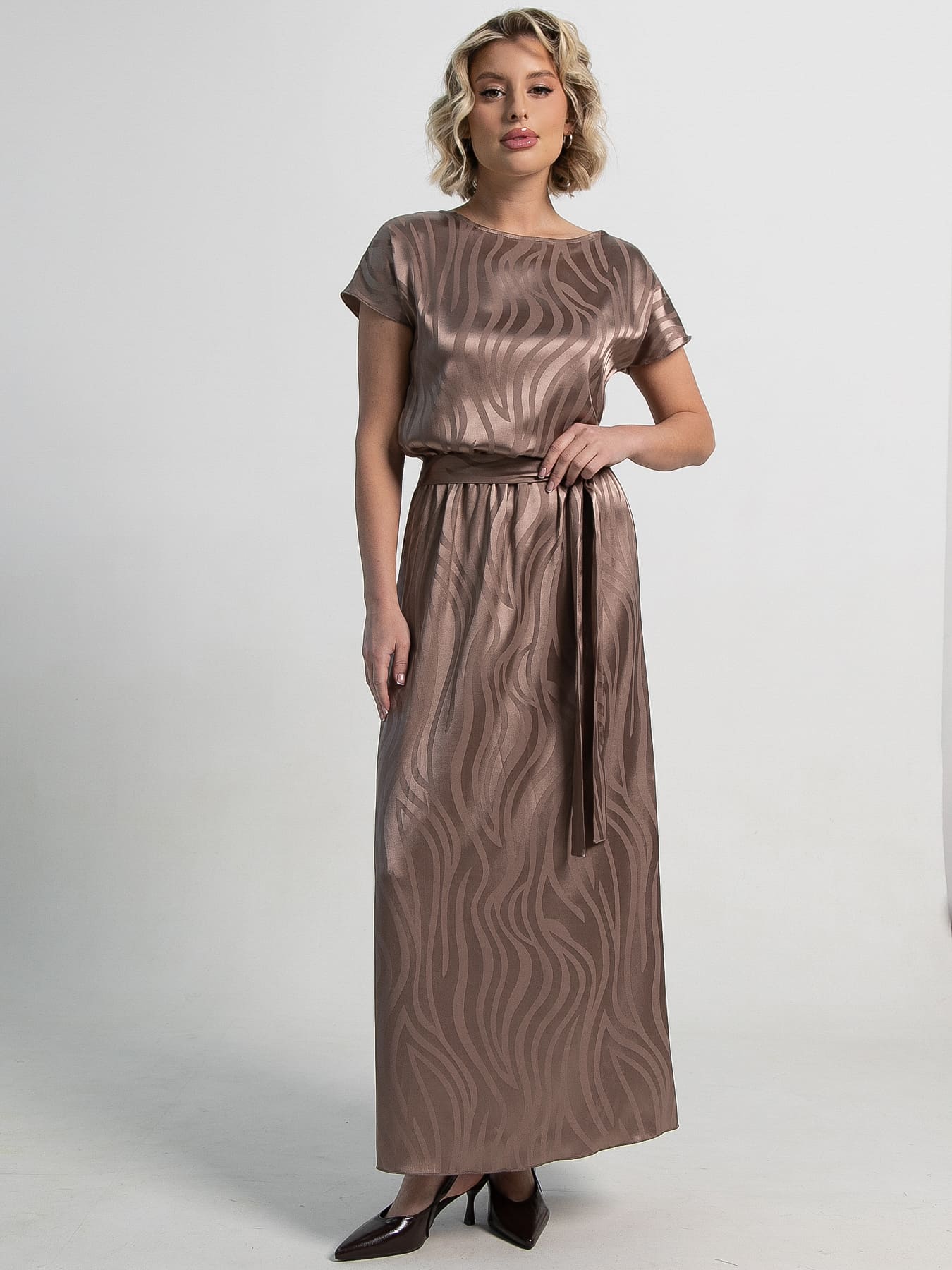 Это стильное платье создано для того, чтобы его обладательница сияла! Платье прямого кроя с укороченным цельнокроеным рукавом. Образ дополняет наличие разрезов по бокам. По талии резинка, что обеспечивает удобную посадку и подчеркивает фигуру. В комплект входит пояс из основной ткани, который завершает образ и придает дополнительную выразительность. Идеальный выбор для тех, кто хочет выглядеть ярко и уверенно!