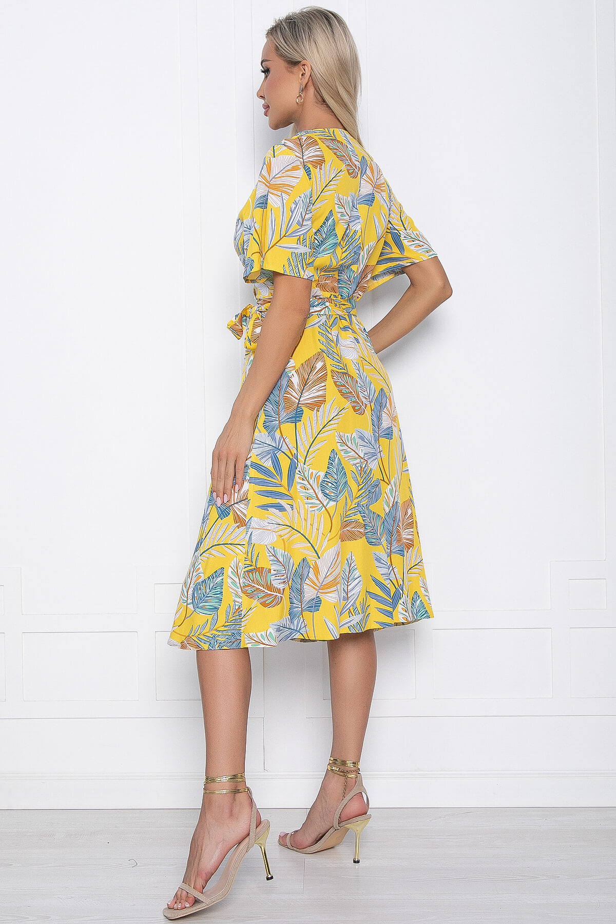 Яркое платье не оставит вас без внимания окружающих! Стильное платье, в котором вы будете ощущать себя женственно и привлекательно. Платье на запах со вшитым поясом обеспечит комфорт. Рукав укороченный, цельнокроеный.