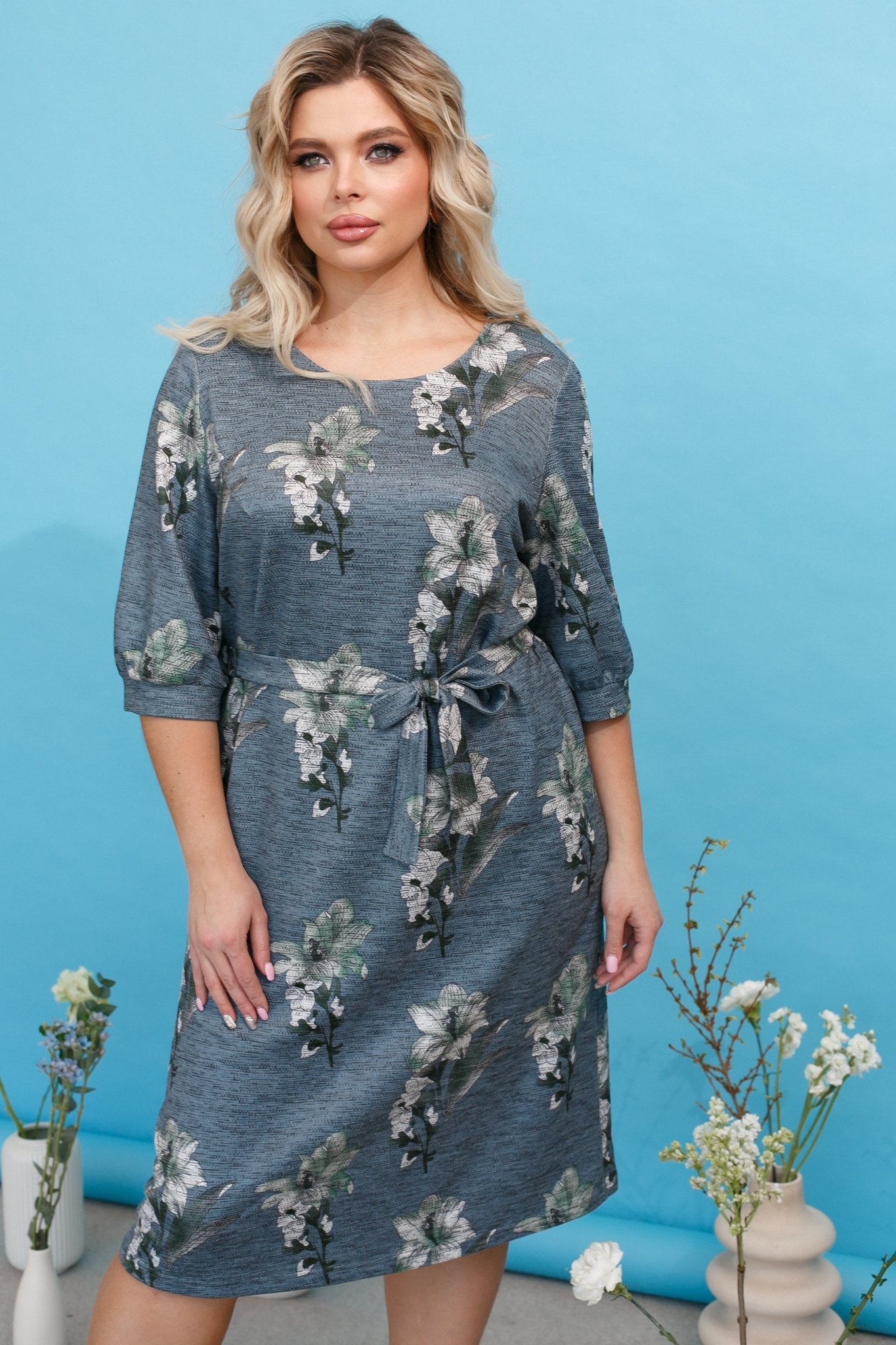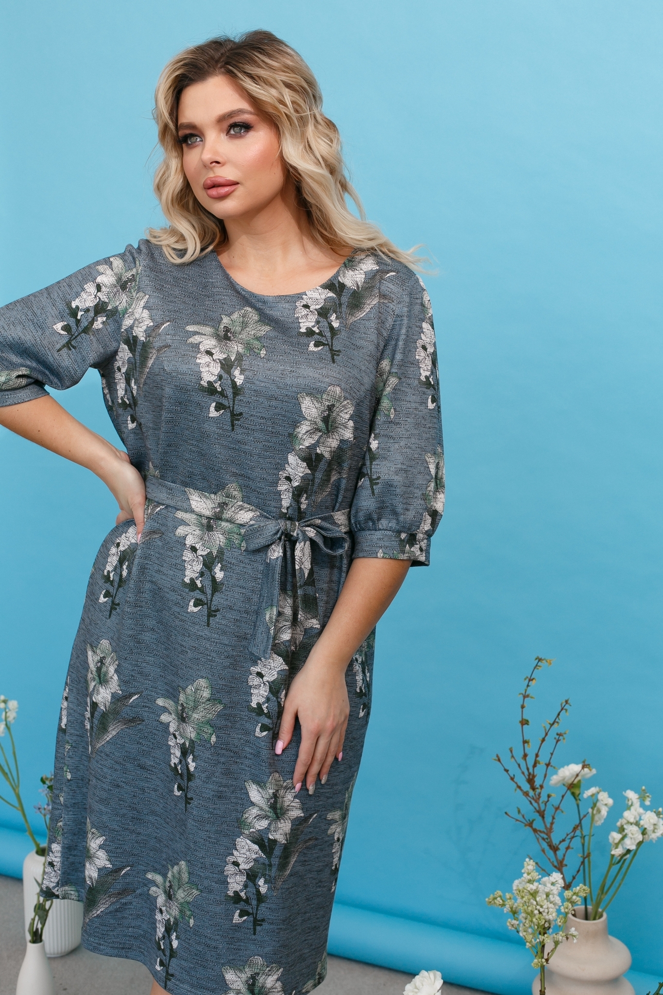 Элегантное платье приталенного силуэта выполнено из трикотажного полотна. Округлая горловина на внутренней обтачке. Втачной рукав 3/4 со сборкой по низу, оканчивается притачной манжетой. Модель прекрасно дополнит ваш гардероб.