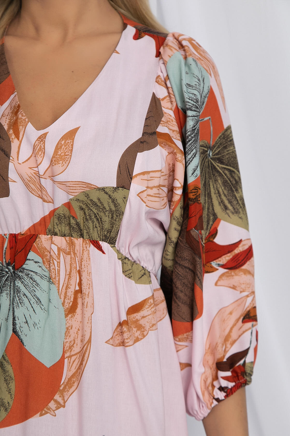 Лёгкое, воздушное, длинное летнее платье из штапеля — это то, что нужно для жаркой погоды! Оно не только удобное, но и красивое: яркий принт поднимет настроение и подчеркнёт вашу женственность. Оно отлично подходит для отдыха и прогулок, а также для города. Сочетайте его с разной обувью: туфлями, босоножками или кедами — и создавайте множество стильных образов! Платье имеет резинку по талии, рукав 3/4 на резинке и длинный разрез по ноге.