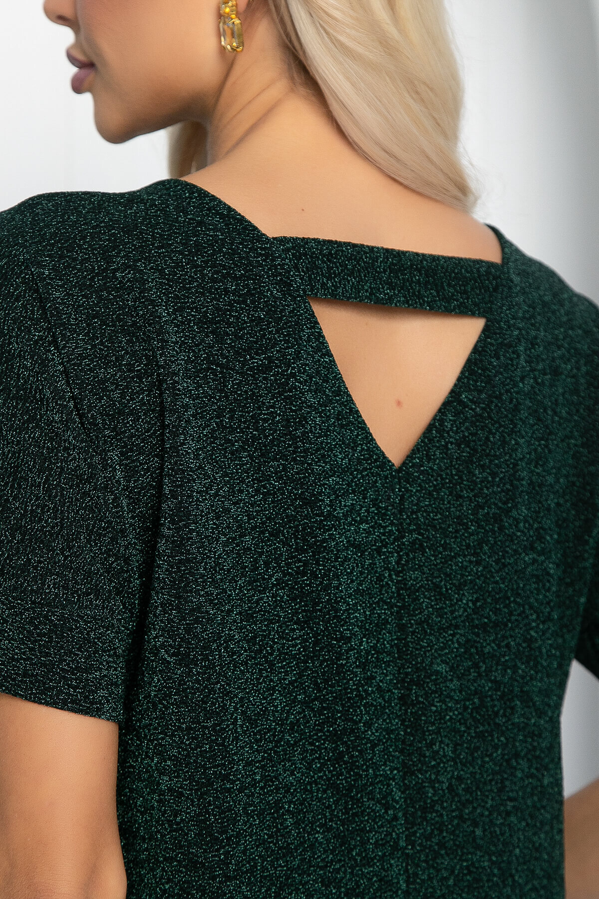 Почувствуйте себя королевой в этом платье! По спинке выполнен декоративный вырез, акцентирующий внимание на вашем образе. Рукав цельнокроеный короткий с манжетой по низу подходит абсолютно для любого типа и телосложения фигуры и скрывает недостатки.