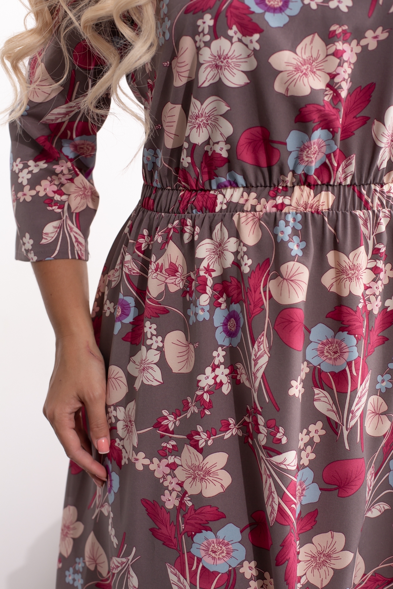 Красивое платье midi. Округлая горловина обработана внутренней обтачкой. Втачные рукава длинной 3/4. Талия отрезная, присборена на эластичную резинку. Легкое и воздушное платье придаст вам женственности и шарма.