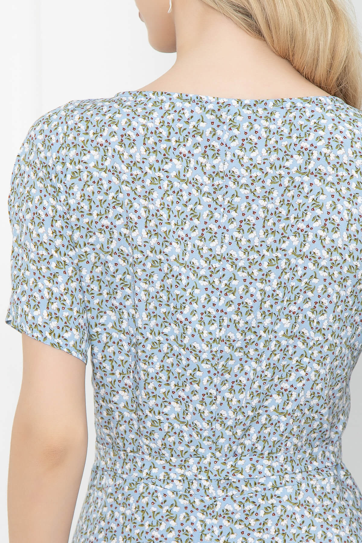 Элегантное платье, которое прекрасно подойдет для прогулки или свидания! Хорошо сочетается с каблучком и с обувью на низком ходу. Хит сезона - платье длины миди из натуральной ткани, с очень популярным сейчас цветочным принтом. Мягкий V-образный вырез красиво подчёркивает шею, тонкий поясок - подчеркнет талию. Небольшой разрез по переду выразительно подчеркнет и удлинит Ваши ножки! В боковом шве потайная молния.