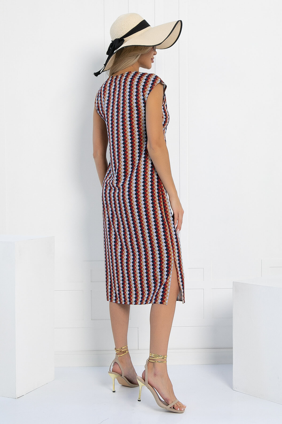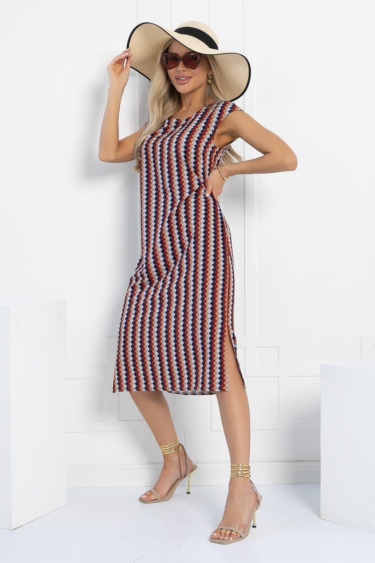 Элегантное платье - незаменимый элемент в гардеробе каждой женщины. Платье с ярким дизайном - то, что нужно на любой случай жизни: на работу, прогулку или даже романтическое свидание. В нем вы будете выглядеть эффектно! Изделие украшают боковые разрезы по низу.