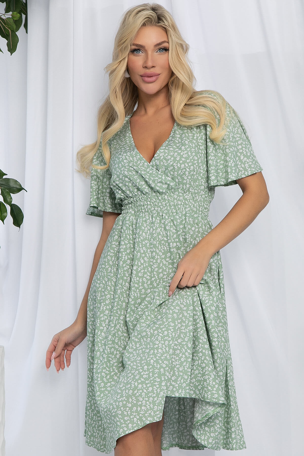 Платье женственного приталенного кроя средней длины. Благодаря гармоничным цветовым сочетаниям такая модель прекрасно впишется в ваш повседневный гардероб. Рукав скроен по типу «крылышко». Платье с завышенной талией, с втачным поясом, собранным на шпульную резину, красивый вырез, горловина скроена на запах — всё это создаёт неповторимый образ.