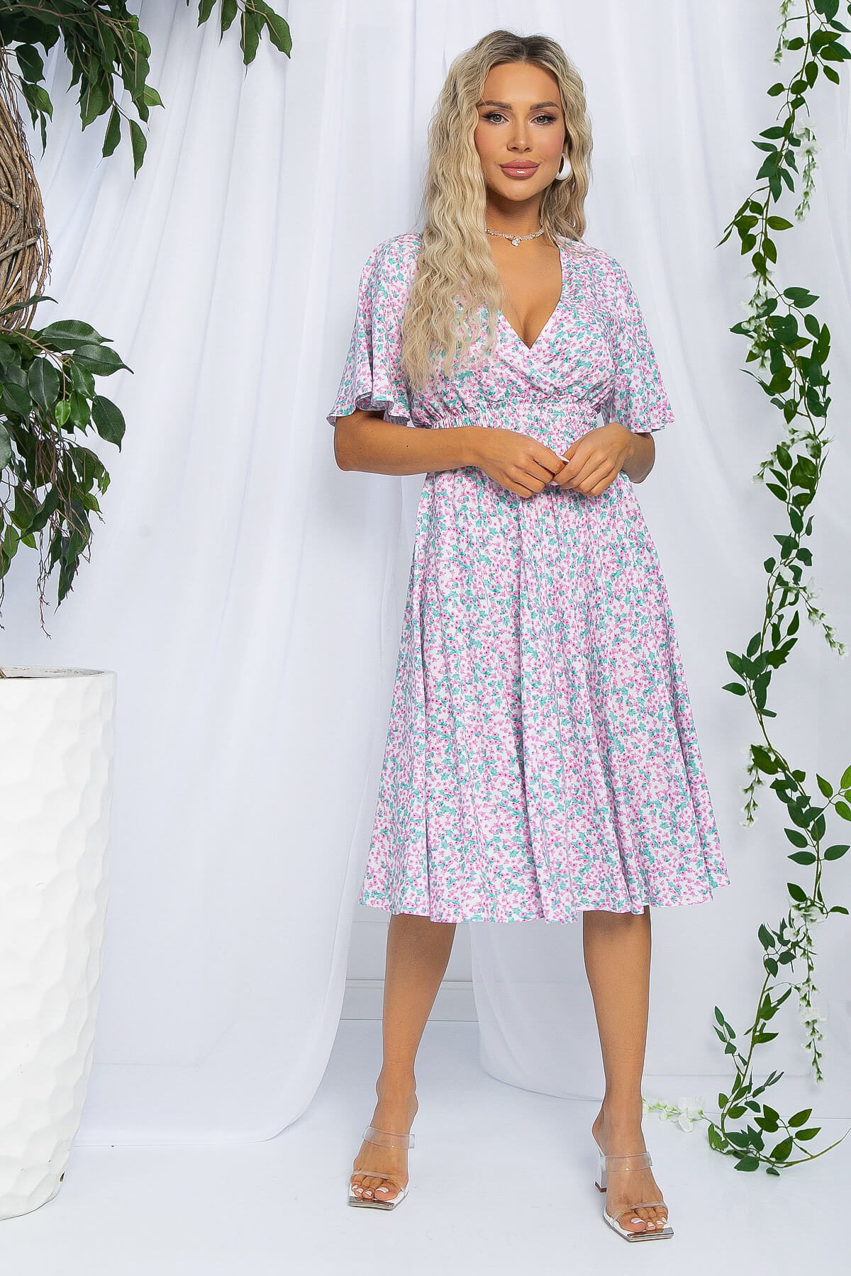 Платье женственного приталенного кроя средней длины. Благодаря гармоничным цветовым сочетаниям такая модель прекрасно впишется в ваш повседневный гардероб. Рукав скроен по типу «крылышко». Платье с завышенной талией, с втачным поясом, собранным на шпульную резину, красивый вырез, горловина скроена на запах — всё это создаёт неповторимый образ.