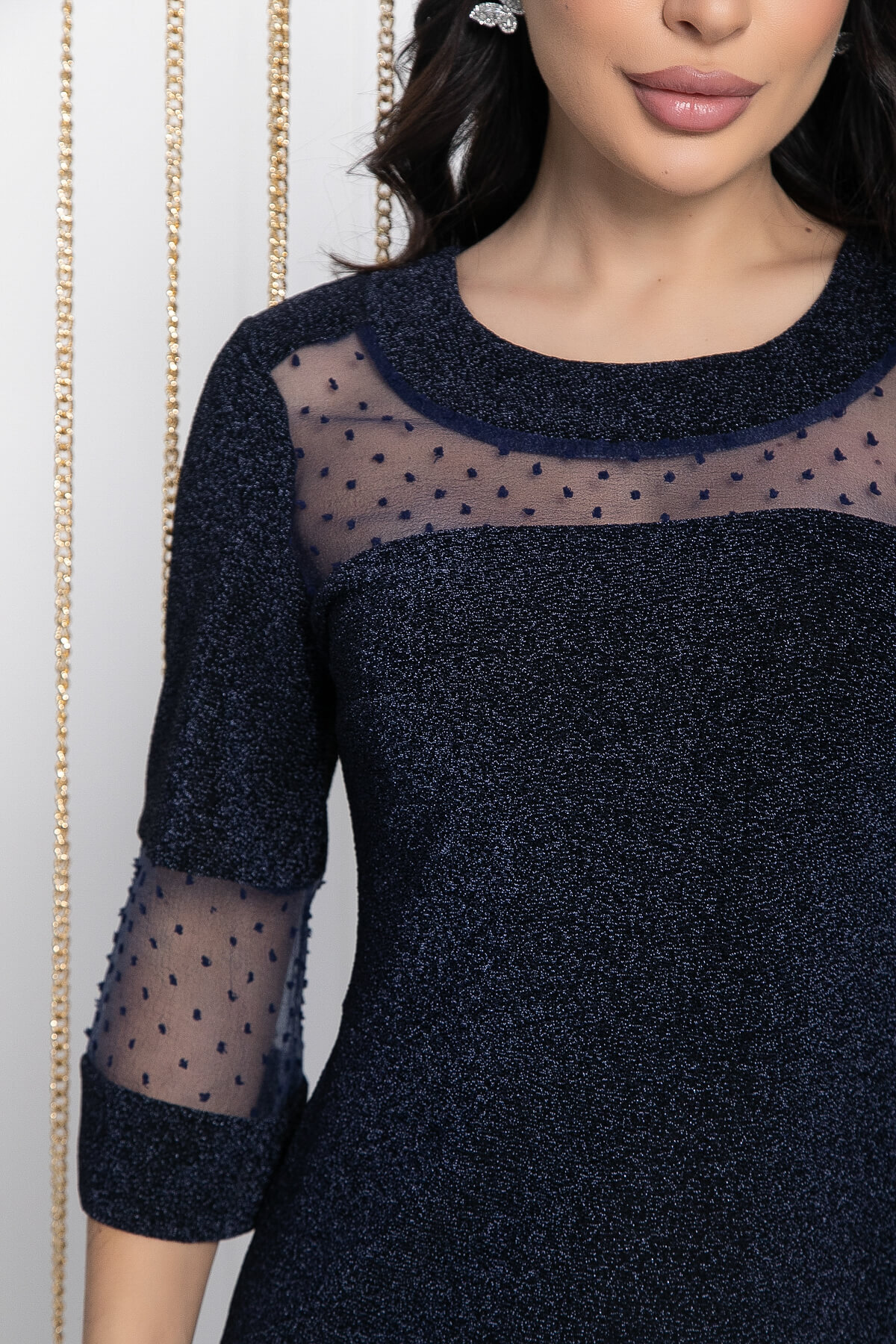 Это платье — воплощение элегантности и утонченности! Длина миди и приталенный силуэт создают классический образ, который подчеркнет вашу фигуру. Особенности этого платья делают его универсальным решением для множества случаев. Имеет рукав средней длины, расширенный к низу, с вставкой из сетки, которая дублируется по линии груди. Юбка расклешенная. Модель стройнит и добавляет уверенности, делая вас звездой любого мероприятия. В комплект к платью идет пояс с декоративной пряжкой, который сделает образ завершенным.