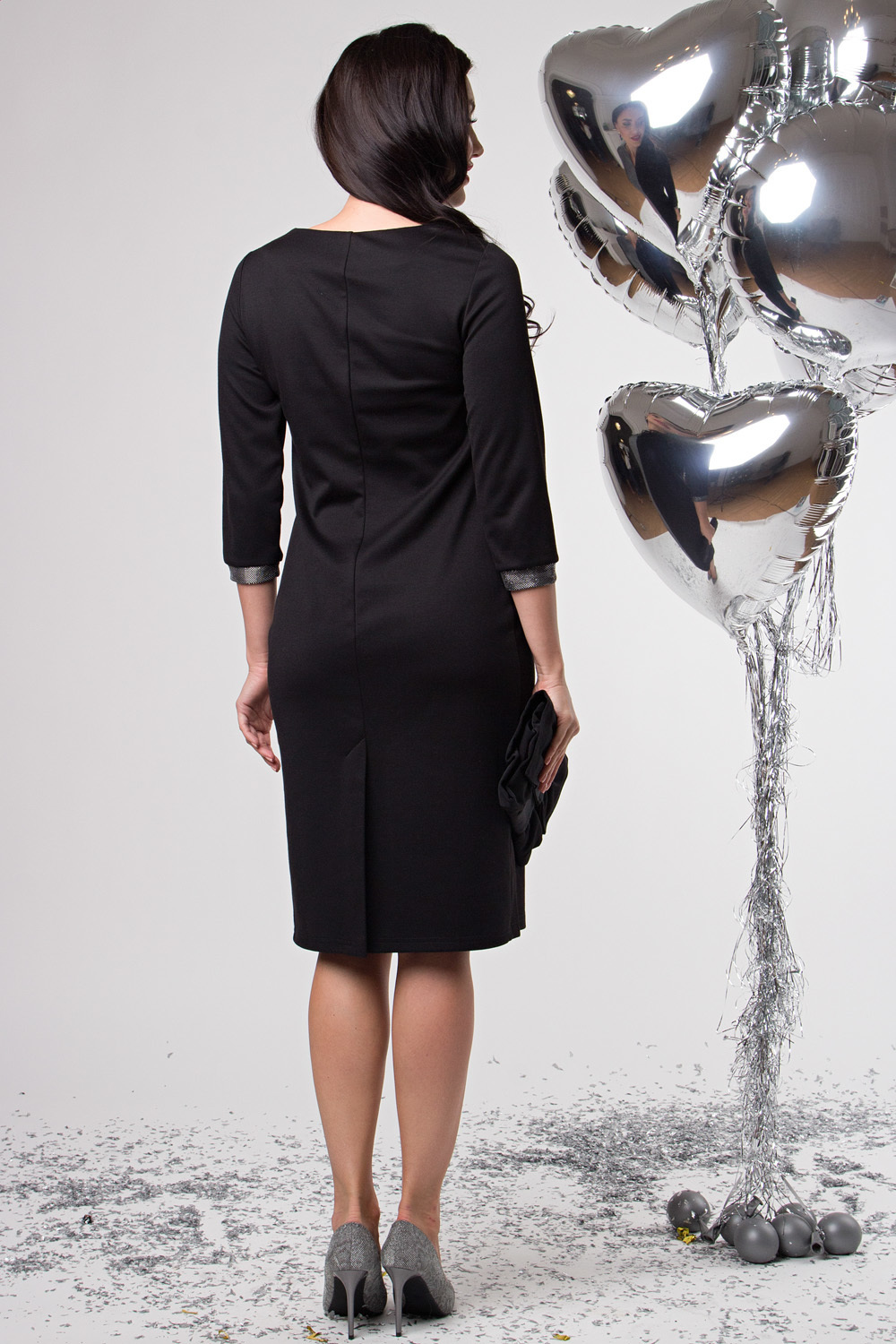 - Эффектное платье скомбинировано из двух видов трикотажа - однотонного черного и серебра;