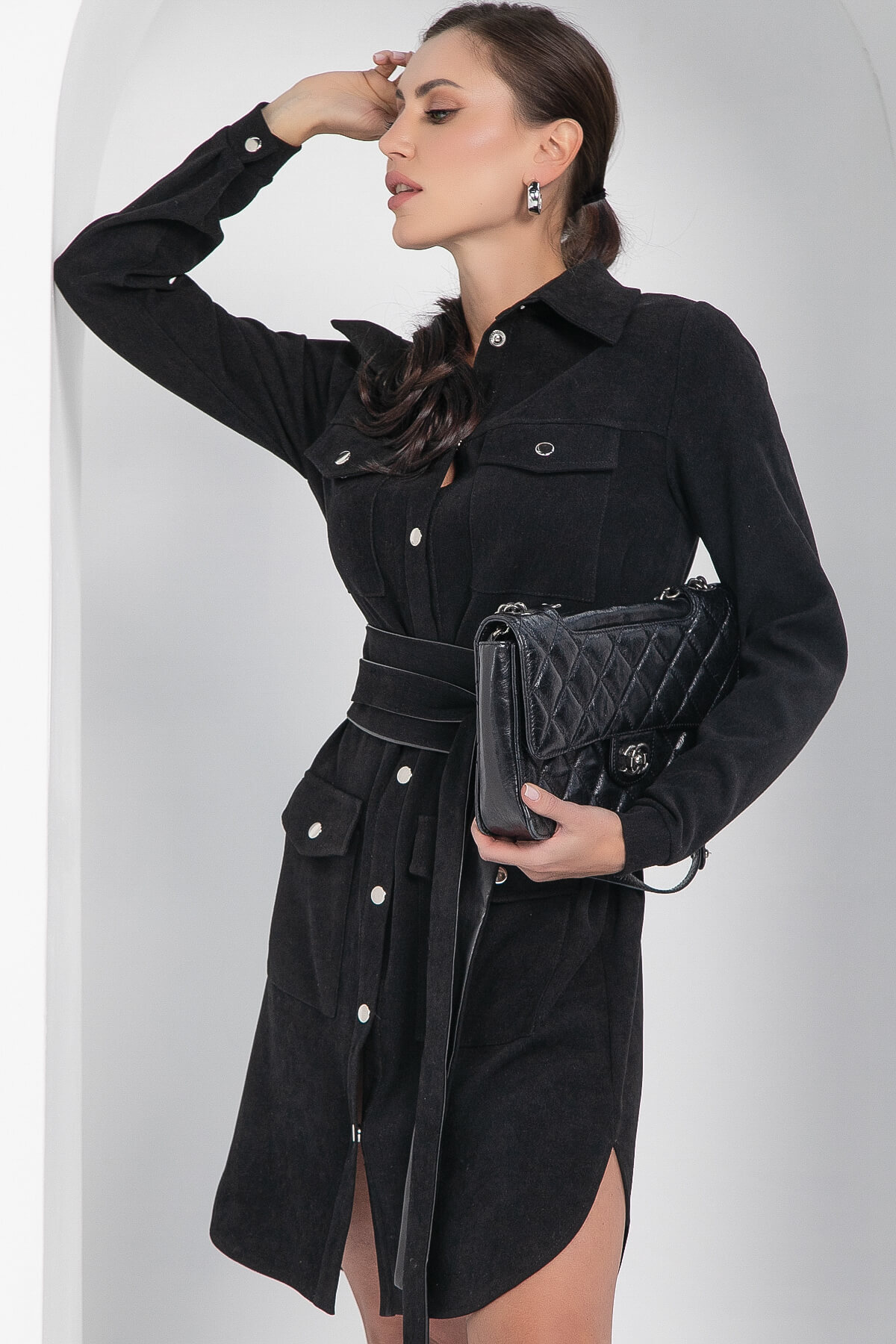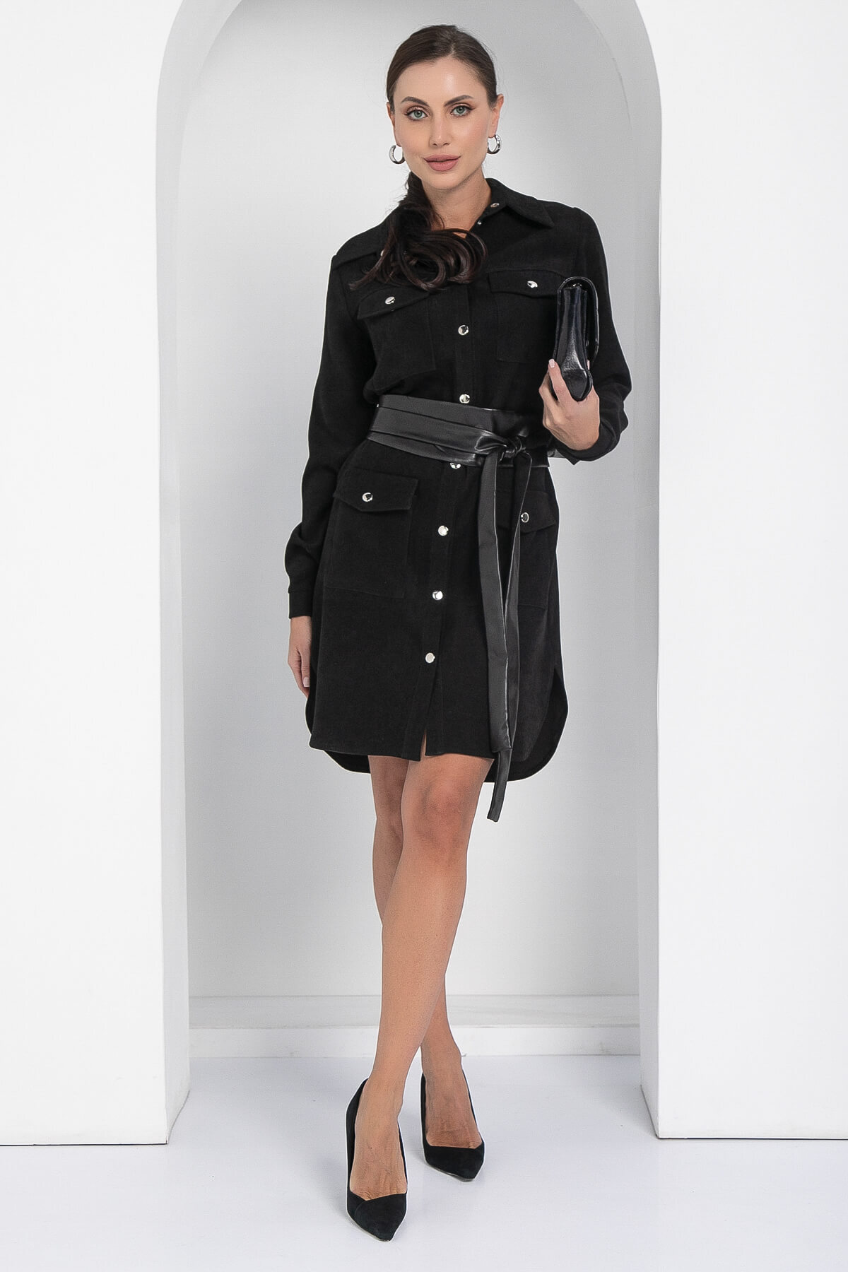 Позвольте вашему стилю преобразиться с этим великолепным платьем-рубашкой, выполненным из микровельвета в свободном прямом силуэте. Это платье станет неотъемлемой частью вашего гардероба, благодаря своему универсальному дизайну и комфортному материалу. В комплект входит двухсторонний пояс-кушак, одна сторона которого выполнена из экокожи, а другая — из того же материала, что и само платье. С его помощью вы сможете подчеркнуть талию и создать разнообразные образы, экспериментируя с различными стилями.