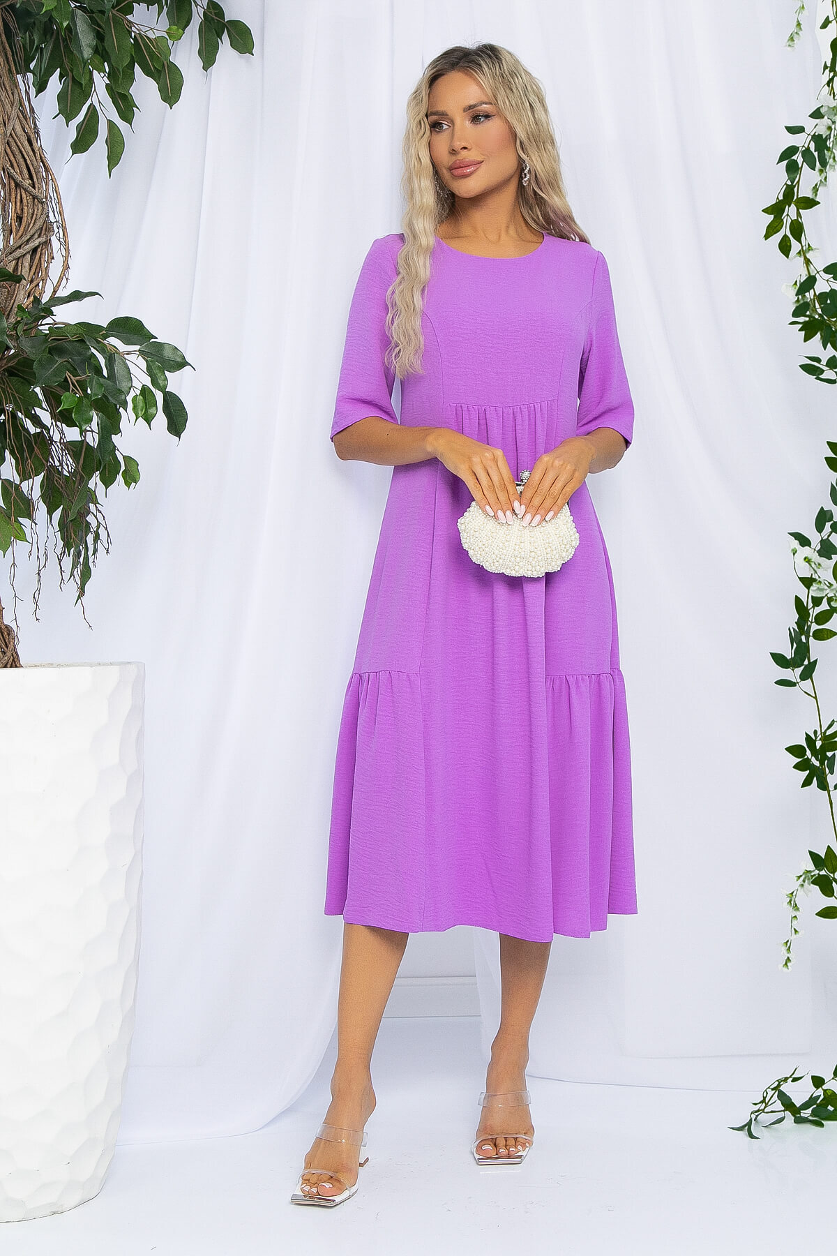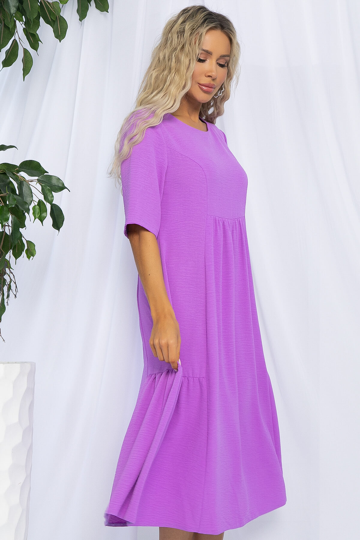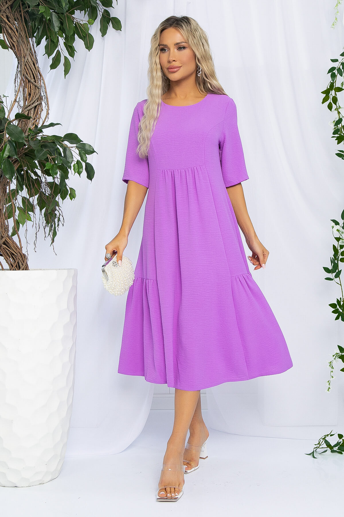 Платье свободного кроя средней длины — это прекрасный выбор для создания стильного и комфортного летнего образа! Его округлая горловина и втачные рукава средней длины придают платью изысканность. Платье расширяется к низу от линии груди, создавая нежный и воздушный силуэт. Декоративные элементы в виде сборок по бокам и чуть ниже линии груди спереди и сзади придают ему неповторимую изюминку. Это платье станет настоящим украшением вашего гардероба!