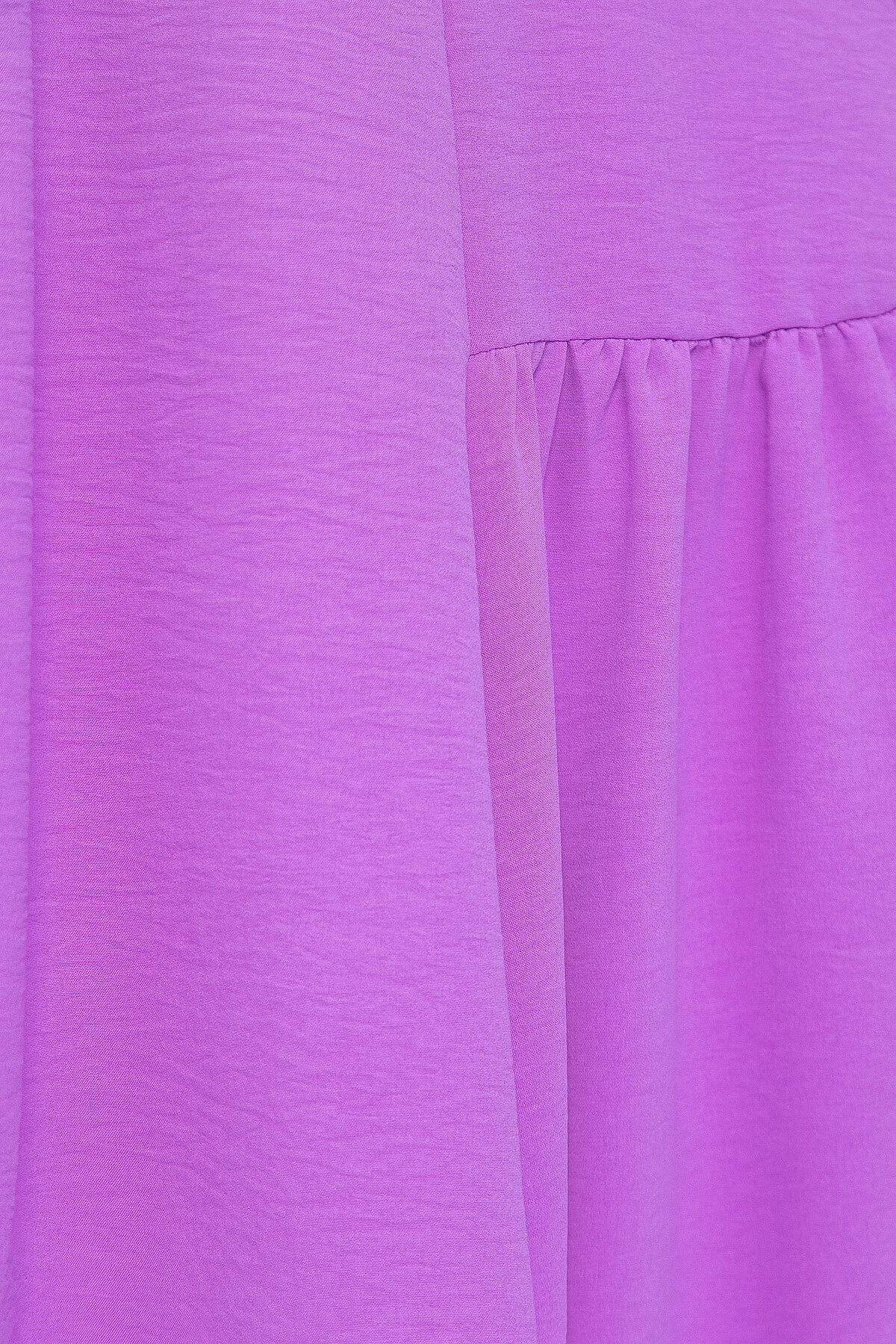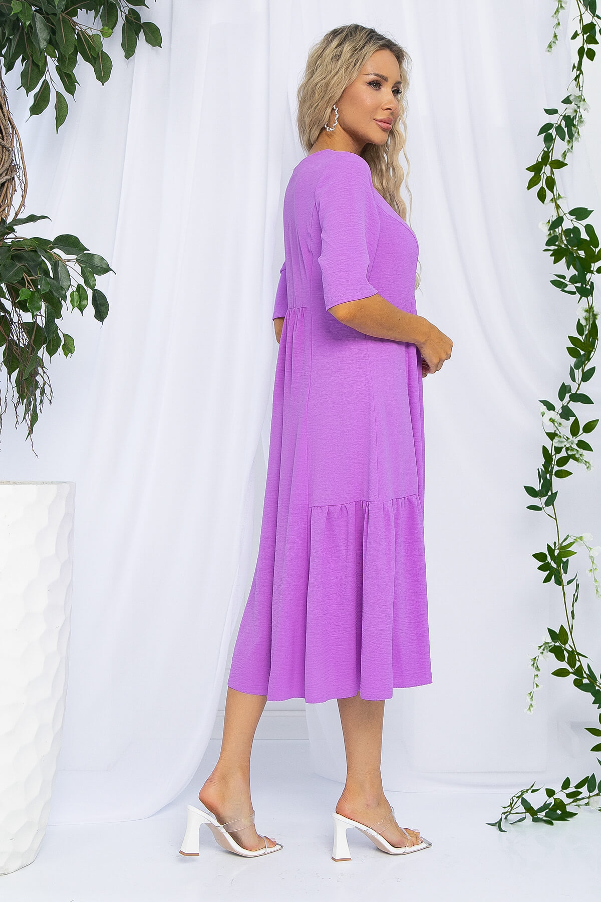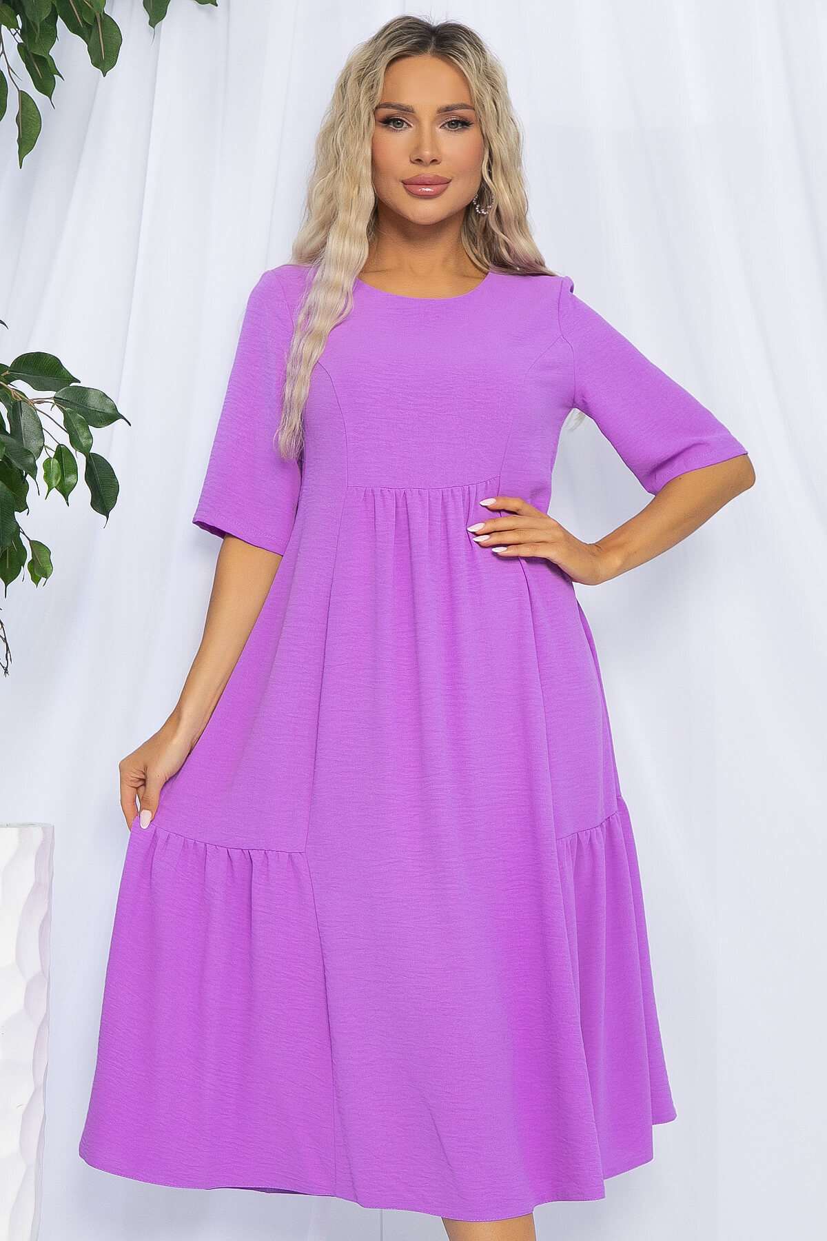 Платье свободного кроя средней длины — это прекрасный выбор для создания стильного и комфортного летнего образа! Его округлая горловина и втачные рукава средней длины придают платью изысканность. Платье расширяется к низу от линии груди, создавая нежный и воздушный силуэт. Декоративные элементы в виде сборок по бокам и чуть ниже линии груди спереди и сзади придают ему неповторимую изюминку. Это платье станет настоящим украшением вашего гардероба!