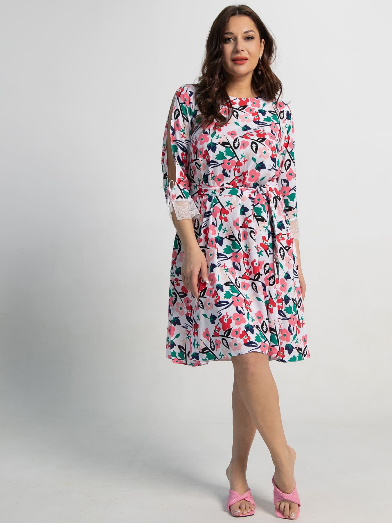 Декоративные элементы : разрезной рукав с кружевом по низу, пояс в комплекте