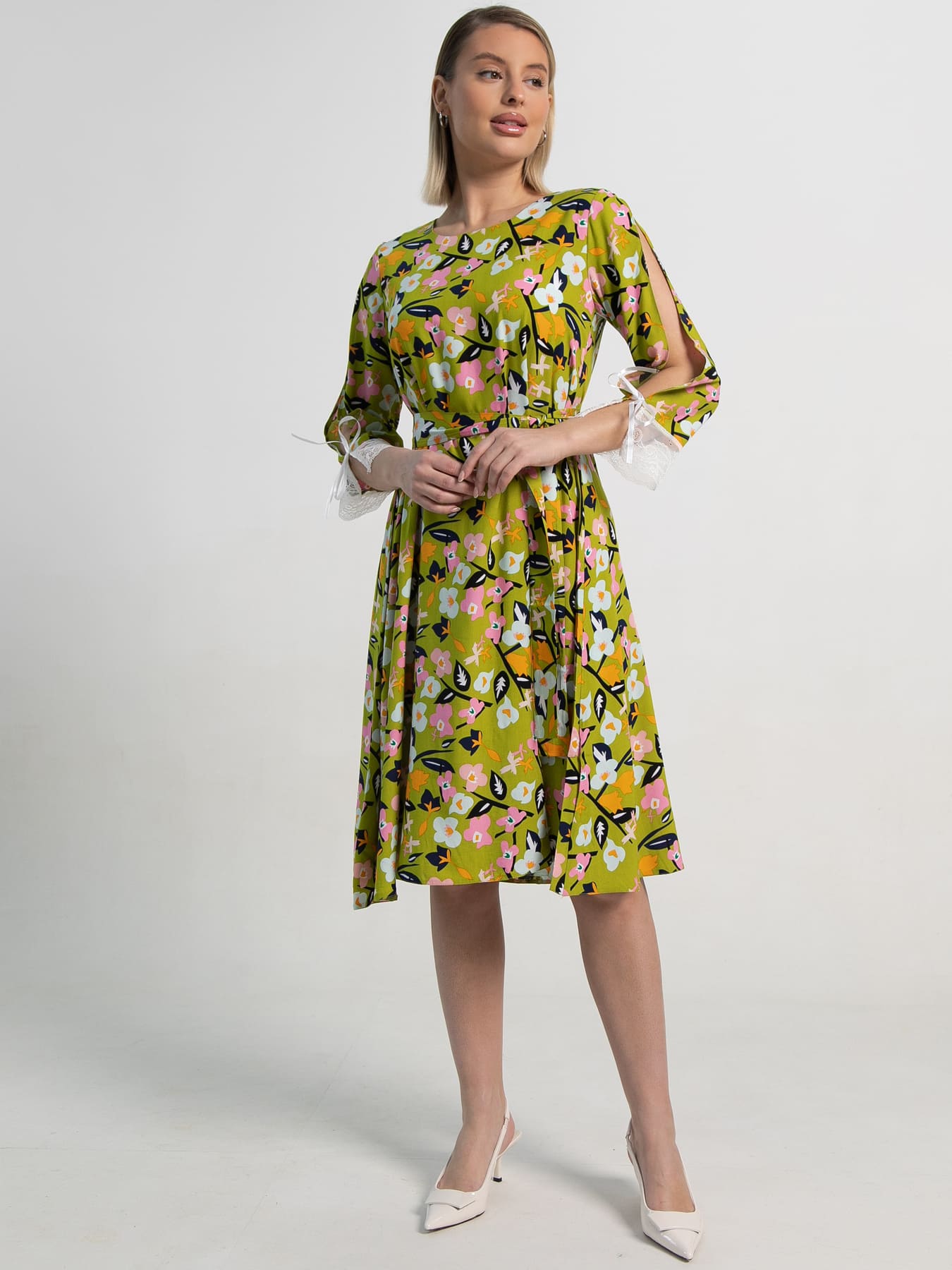 Это стильное платье А-силуэта выполнено из натуральных материалов, обеспечивающих комфорт и свободу движений. Платье с округлым вырезом подчеркивает шею и декольте, добавляя нотку женственности. Разрезные рукава с изысканным кружевом по низу придают образу романтичности и утонченности. В комплекте идет пояс, который позволяет регулировать силуэт и акцентировать талию, создавая гармоничный образ. Это платье идеально подходит как для повседневной носки, так и для особых случаев. Сочетайте его с любимыми аксессуарами и обувью, чтобы создать уникальный стиль!