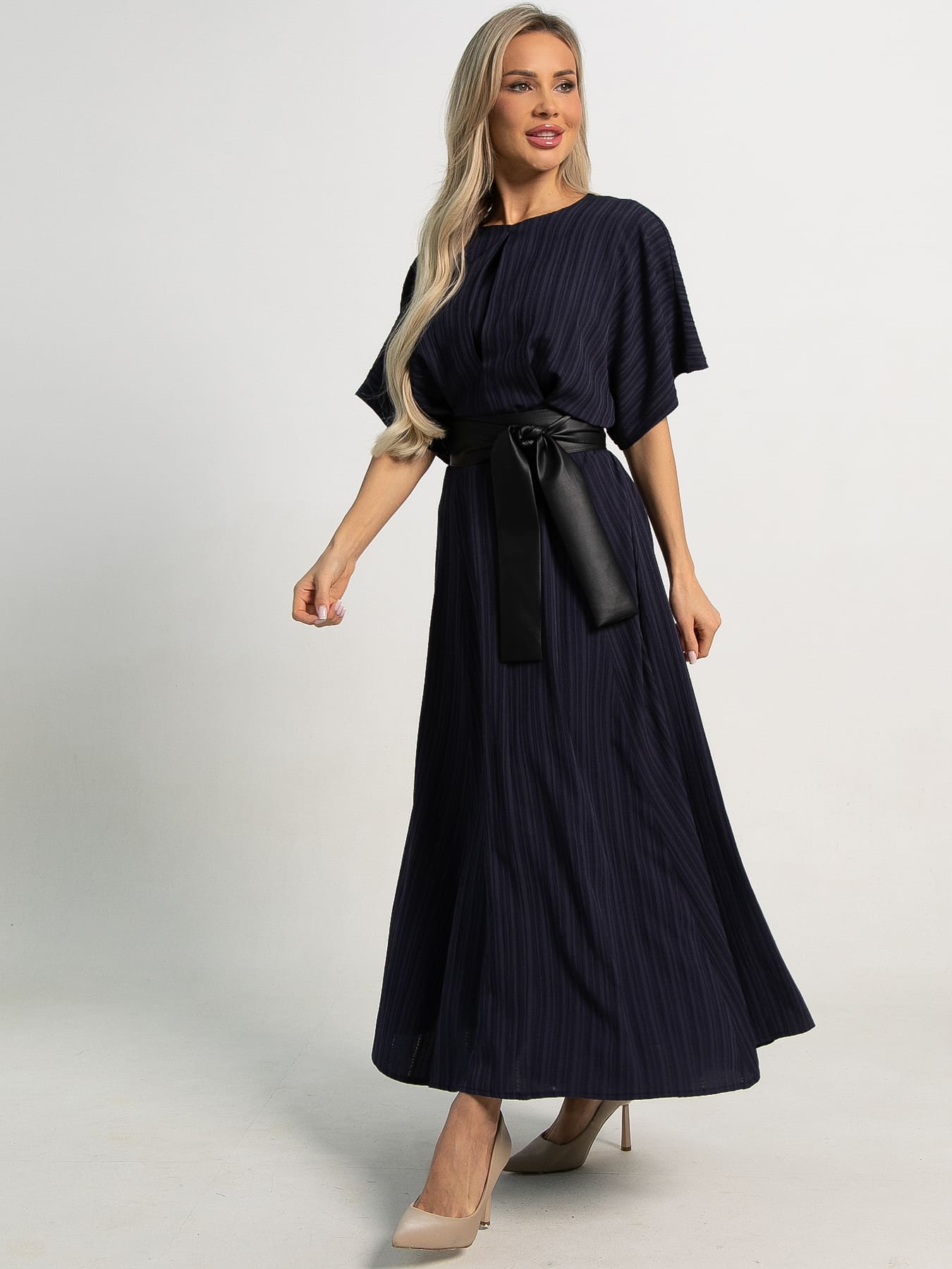 Создайте утонченный и женственный образ с этим великолепным платьем, которое сочетает комфорт и элегантность. Это идеальный выбор для тех, кто ценит каждую деталь. Полуприлегающий крой мягко подчеркивает фигуру, не ограничивая движений, а расклешенная юбка из нескольких клиньев придает объем и динамику при ходьбе. Округлая горловина и короткий цельнокроеный рукав добавляют легкости и нежности. Два защипа спереди и два сзади на талии акцентируют достоинства фигуры. Платье отрезное по линии талии. В комплекте идет широкий длинный пояс, который можно завязывать разными способами, подчеркивая талию и завершая образ.