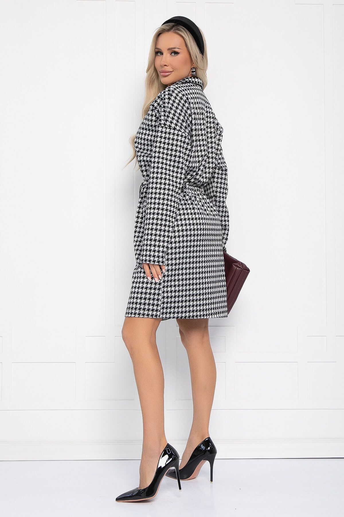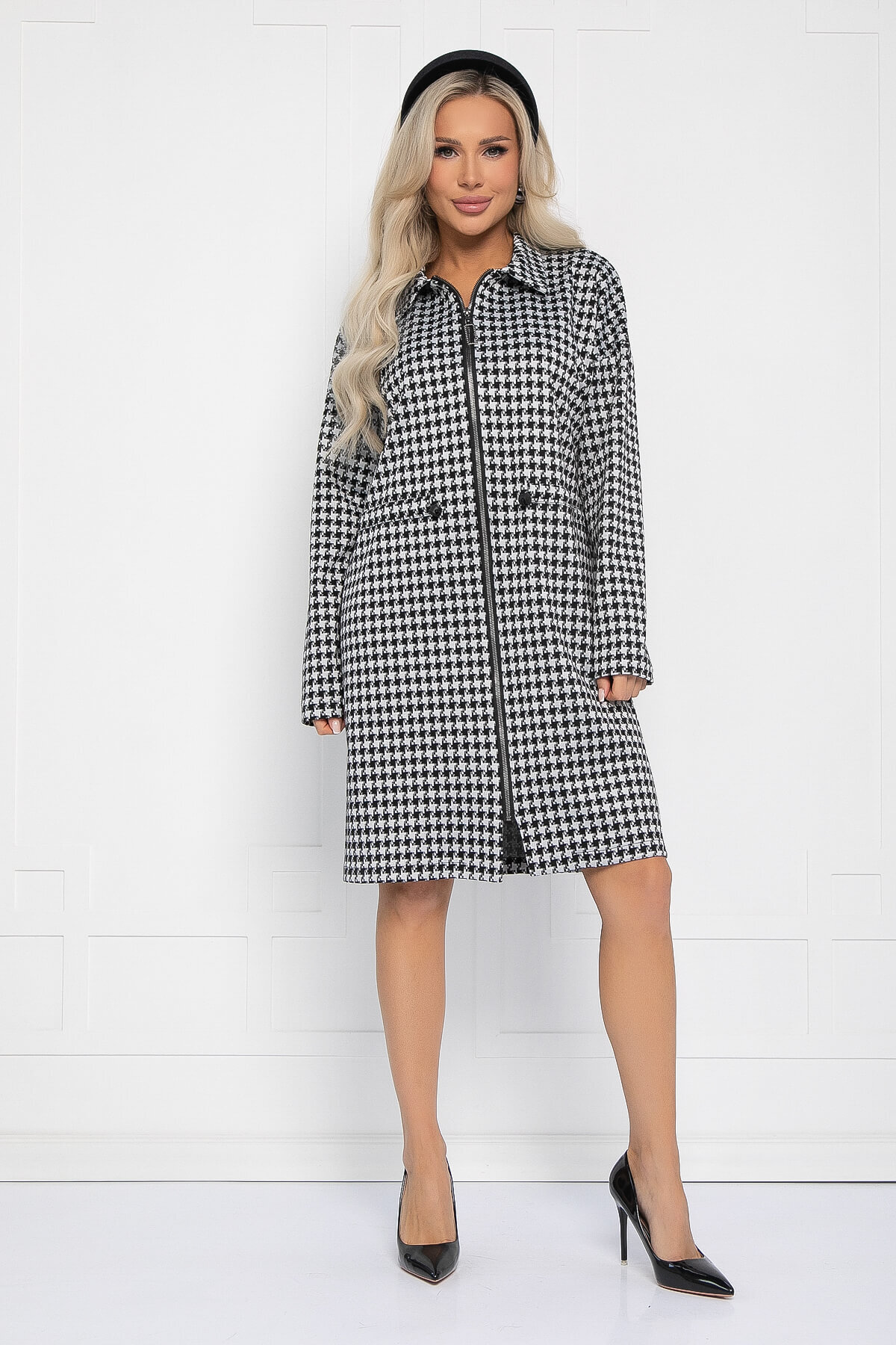Платье с оригинальным дизайном станет отличным дополнением к вашему гардеробу. Оно прекрасно подходит для создания современного образа. Платье обладает элегантным воротником и застёжкой на молнию, что придаёт ему утончённый вид. Спущенные плечи добавляют нотку расслабленности. По талии расположена кулиска с вставленной резинкой и регулятором, что позволяет подстроить силуэт под ваши предпочтения.