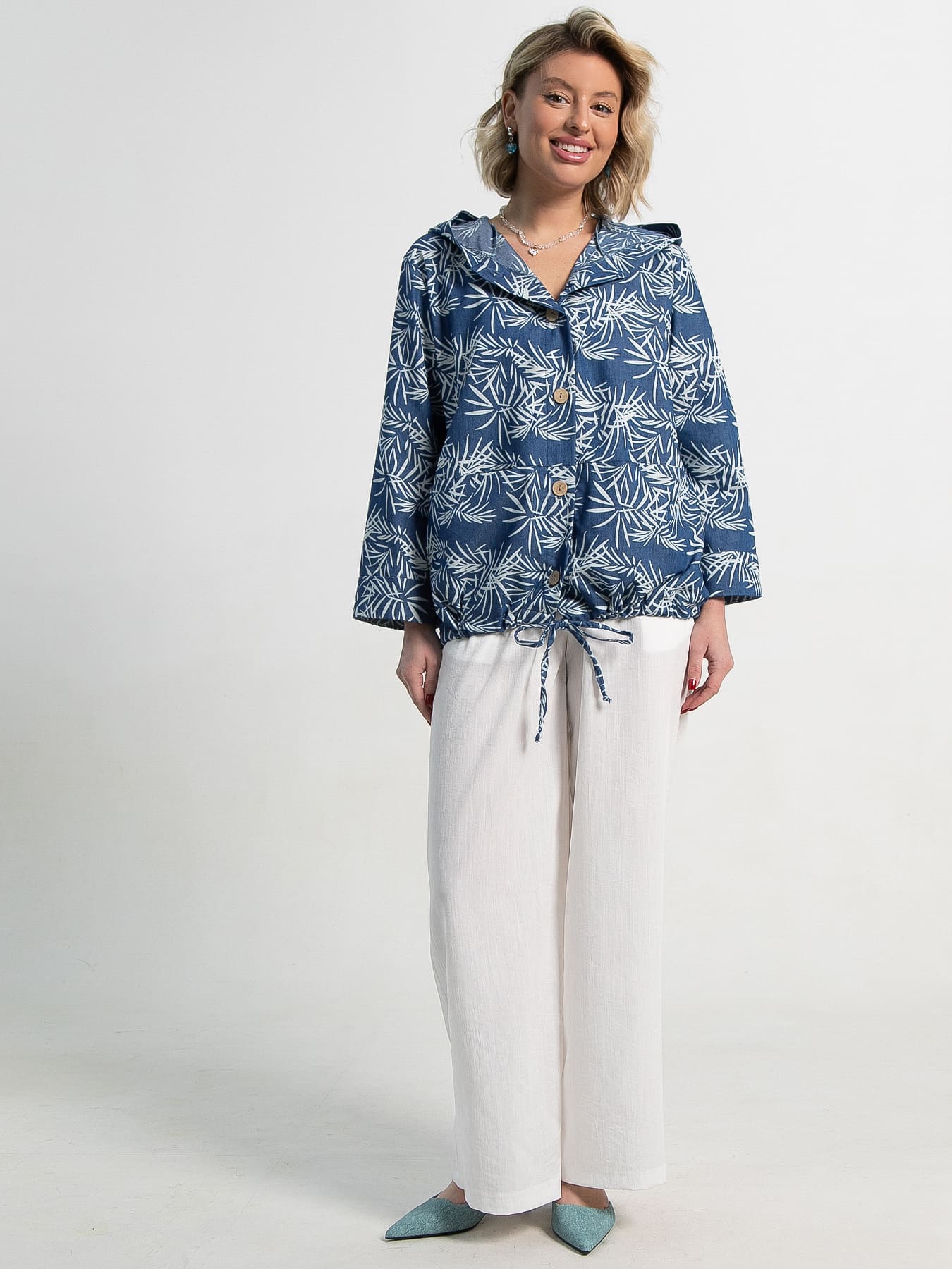 Пыльник абсолютно справедливо стал незаменимой вещью гардероба многих женщин. Такой предмет гардероба подходит для очень тёплой весны или лета, когда на плечи нужно набросить тонкий второй слой одежды. Предлагаем летний пыльник прямого кроя, застёжка на пуговицах, с капюшоном. По низу изделия кулиска, свободные рукава 7/8 с манжетами, два кармана в горизонтальном шве на полочке. Достаточно накинуть летний пыльник поверх обычных джинсов с футболкой — и стильный образ готов!