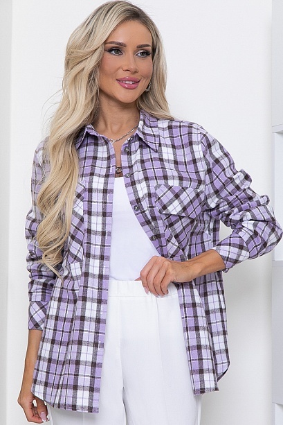 Рубашка свободного силуэта из комфортного текстильного полотна с центральной застежкой на пуговицы.Воротник отложной на стойке.По переду накладные карманы с клапанами.