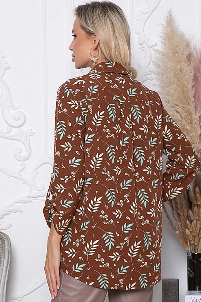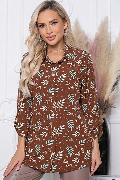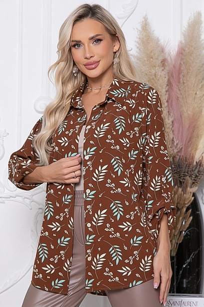 Рубашка из текстильного полотна свободного силуэта с центральной застежкой на пуговицы.Воротник отложной на стойке.