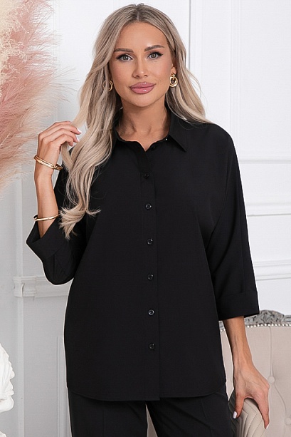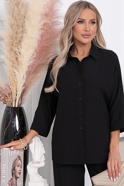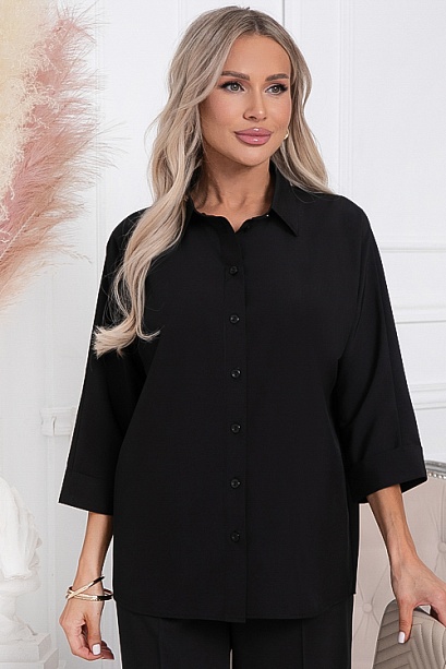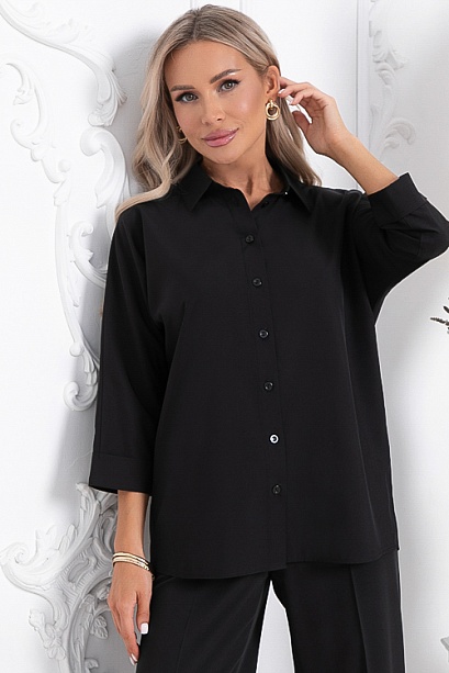 Рубашка из текстильного полотна свободного силуэта с цельнокроеными рукавами.