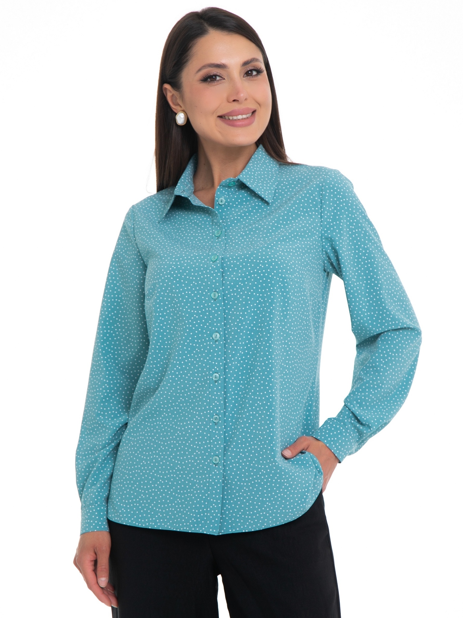 Возвращение любимой модели от Diolche. Блузка продуманного и универсального фасона, идеально подходящего под любой низ. Можно носить как с классическими брюками и юбками, так и с джинсами или под сарафан. Прекрасно смотрится как в заправленном состоянии, так и на выпуск. Классическая, немного приталенная рубашка с воротничком на стойке. Застёгивается спереди на пуговицы. Рукав втачной длинный на манжете. Спереди по бокам сделаны вытачки на грудь. По спинке сделаны вытачки в области талии. Удобная, комфортная вещь на все случаи жизни! Блузочная комфортная ткань, безупречная посадка!