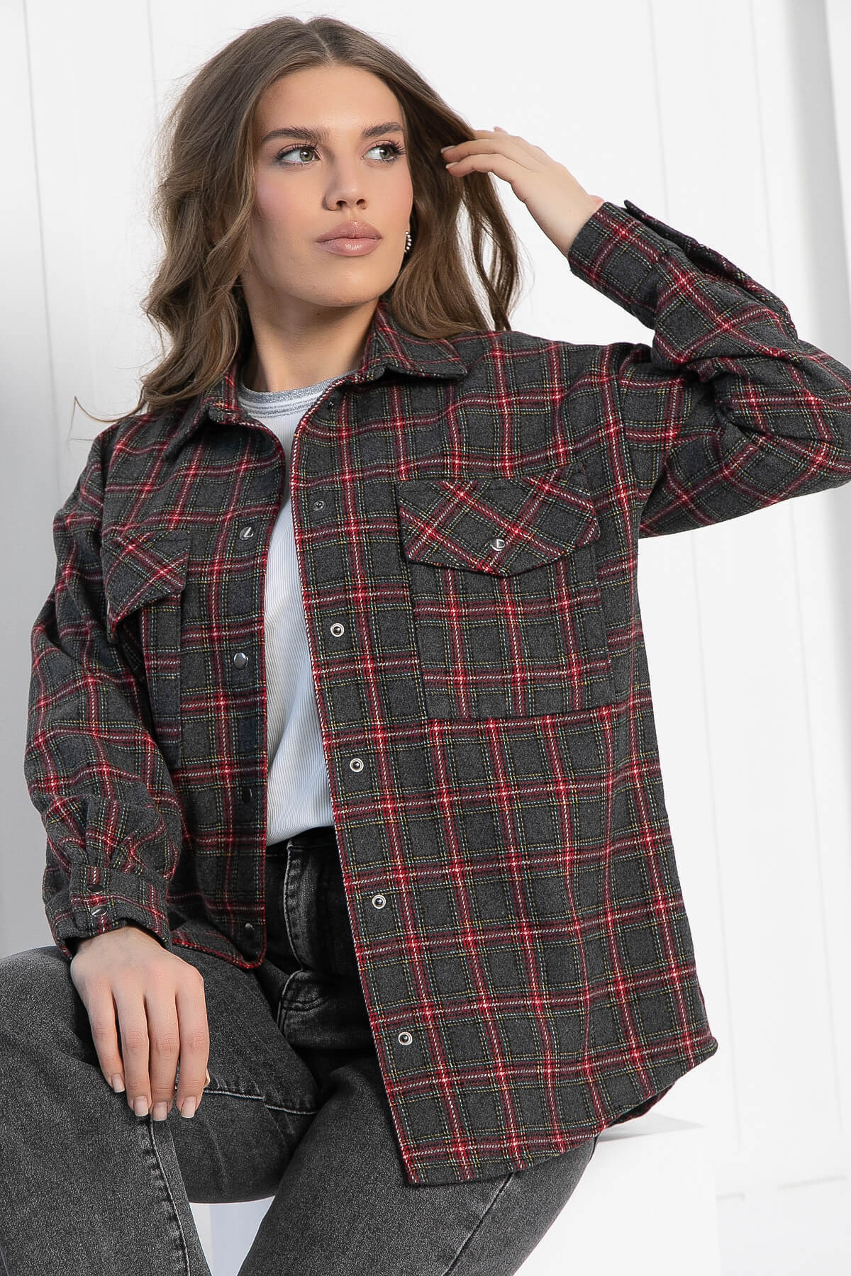 Рубашка из плотной ткани в модную клетку на металлических кнопках, с длинным рукавом и накладными карманами прекрасно подходит для повседневного многослойного образа. Сочетая в себе комфорт и уют, она создает новый тренд в одежде и свежий альтернативный вариант для гардероба. Идеально подходит к джинсам, брюкам и шортам.