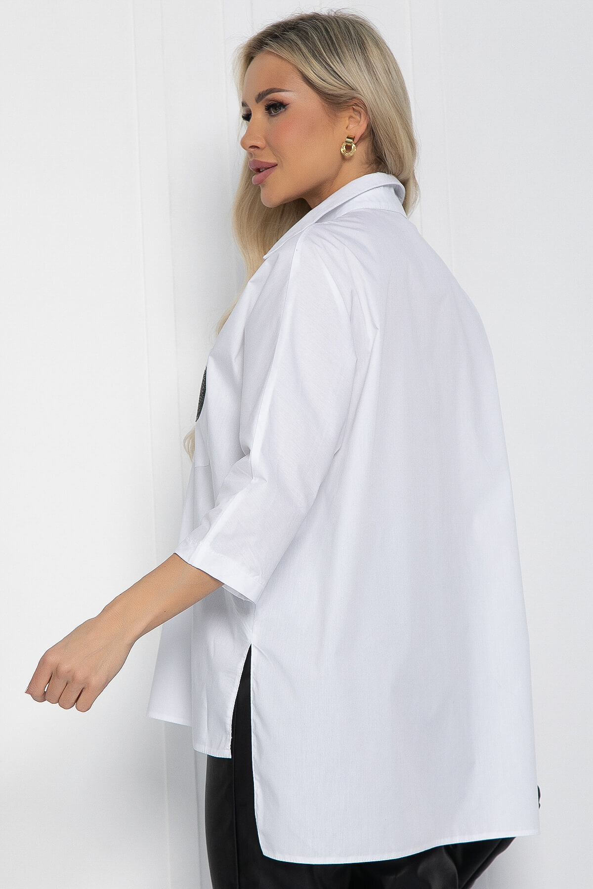 Рубашка из хлопка со стойкой-воротником - это идеальное решение для повседневного гардероба. Удлиненный фасон делает стильный и современный вид, при этом прекрасно скрывая все недостатки фигуры. Это великолепный выбор для тех, кто предпочитает оригинальность и стиль в своем аутфите.
