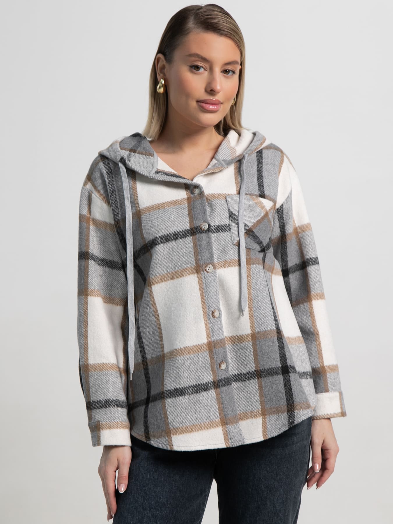 Пополните свой гардероб стильной новинкой – уютной женской рубашкой прямого силуэта с капюшоном. Современный дизайн в сочетании с теплой тканью обеспечивает гармоничный баланс между стилем и удобством. Рукав заканчивается манжетом, который застегивается на пуговицу. Низ рубашки закруглен к бокам. Классический крой, удобный капюшон и практичная застежка делают эту модель идеальной для повседневной носки. Добавьте эту теплую женскую рубашку с капюшоном в свой гардероб и создавайте стильные и уютные образы каждый день!