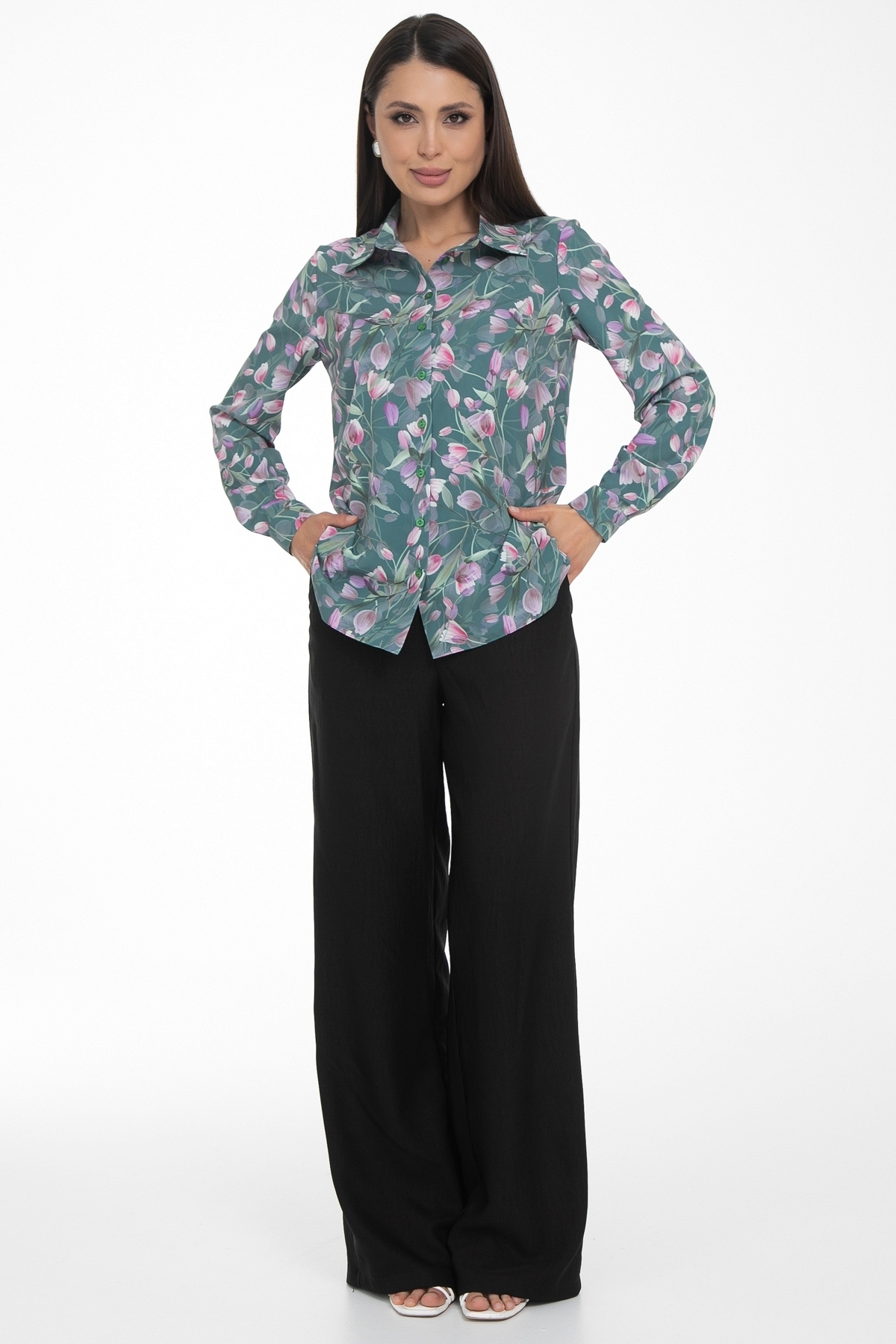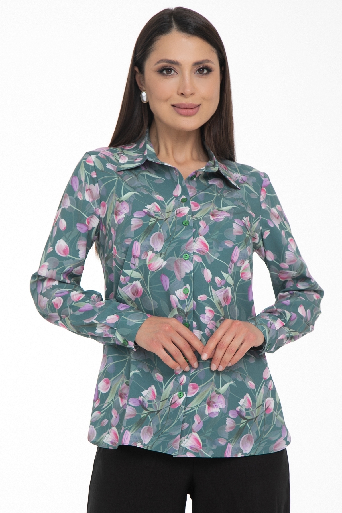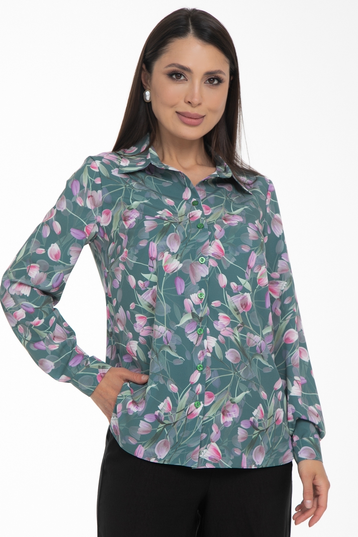 Возвращение любимой модели от Diolche. Блузка продуманного и универсального фасона, идеально подходящего под любой низ. Можно носить как с классическими брюками и юбками, так и с джинсами или под сарафан. Прекрасно смотрится как в заправленном состоянии, так и на выпуск. Классическая, немного приталенная рубашка с воротничком на стойке. Застёгивается спереди на пуговицы. Рукав втачной длинный на манжете. Спереди по бокам сделаны вытачки на грудь. По спинке сделаны вытачки в области талии. Удобная, комфортная вещь на все случаи жизни! Блзочная комфортная ткань, безупречная посадка!