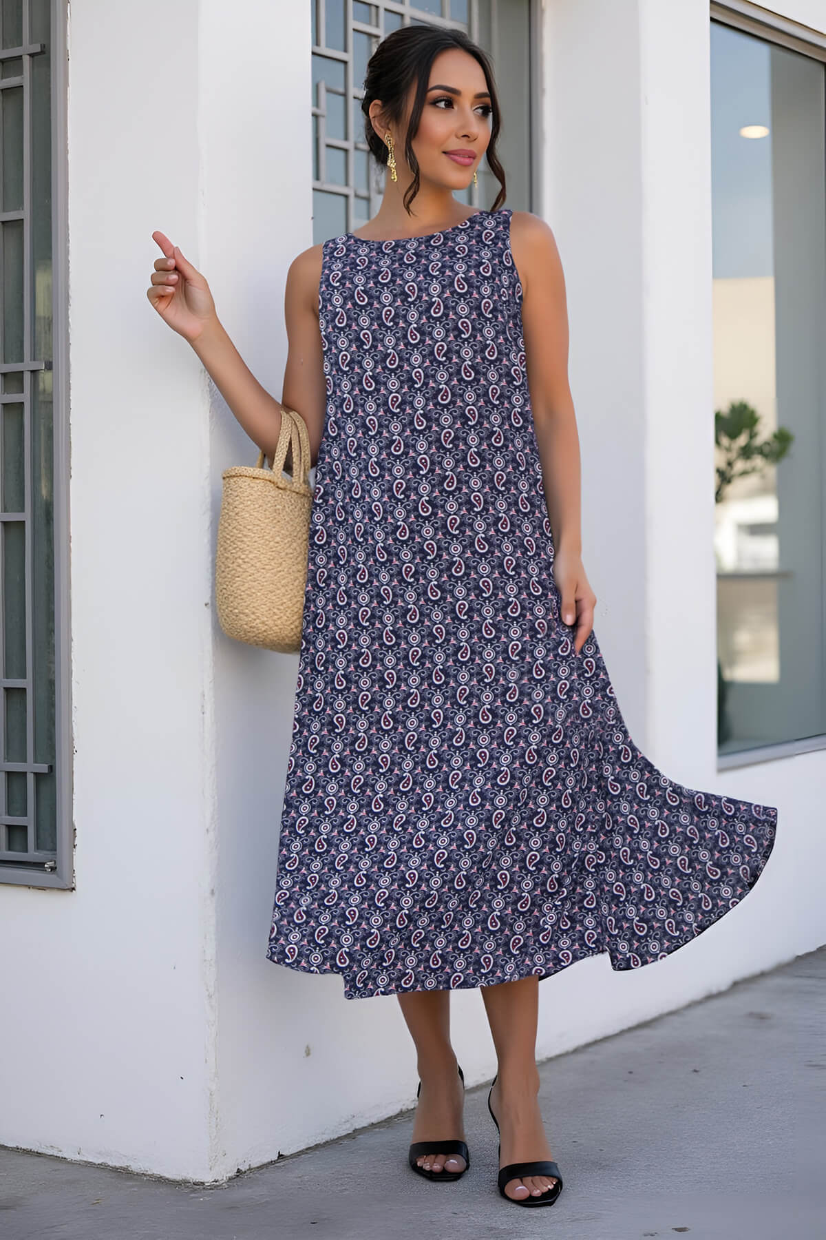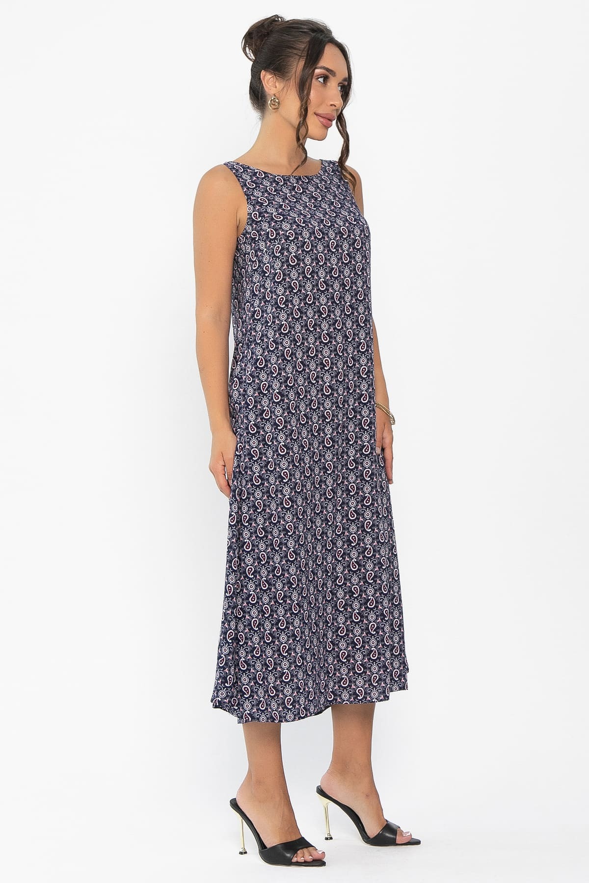 Платье-сарафан — необычная модель в романтическом стиле, которая позволит выглядеть женственно и привлекательно каждый день. Фасон А-силуэта без рукавов плавно расклешается к низу, не подчеркивает нюансы фигуры, позволяет чувствовать себя комфортно и уверенно. Главный акцент платья — боковые вставки, которые добавляют образу легкости и создают эффект летящей походки. Носить модель можно как в качестве самостоятельного элемента гардероба, так и поверх базовых однотонных футболок, топов или блузок.
