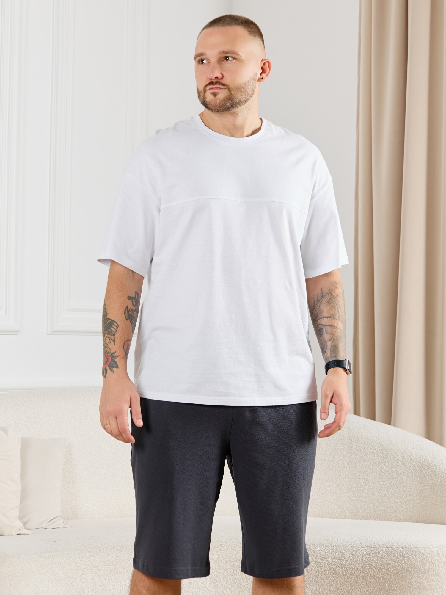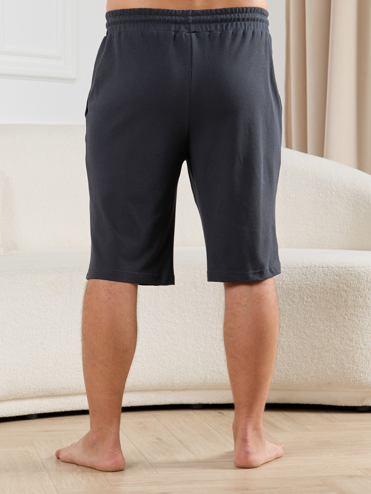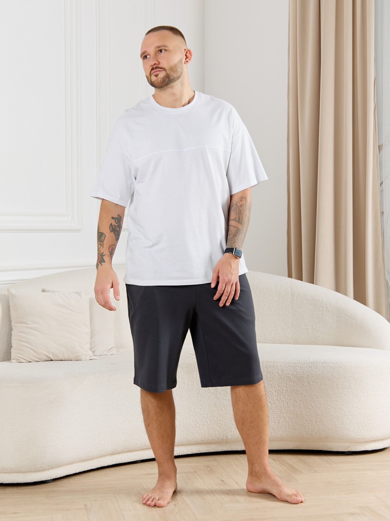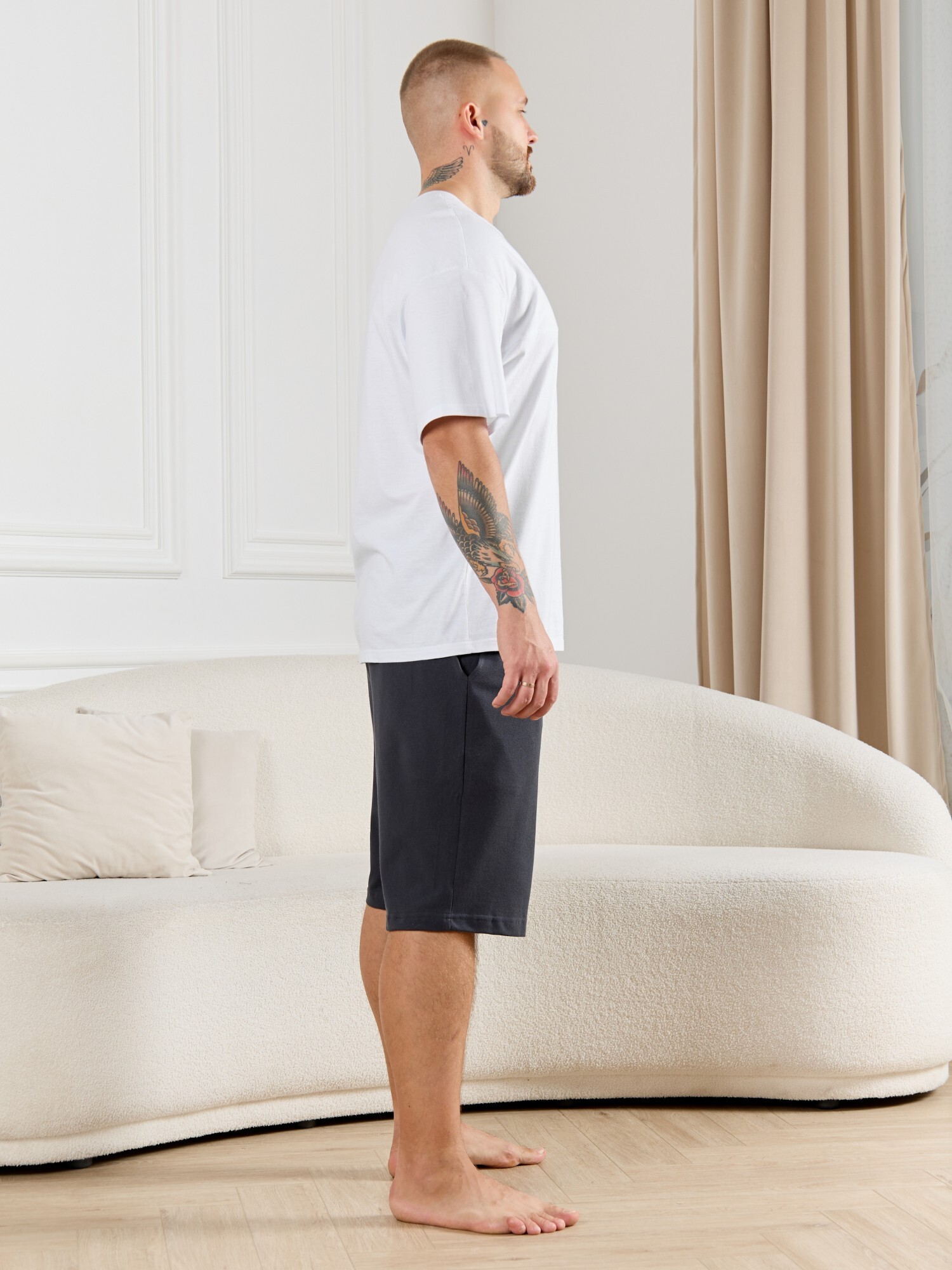 Шорты мужские из гладкокрашеного трикотажного полотна "пике", свободного покроя, на притачном поясе с эластичной тесьмой внутри, с карманами в боковых швах. Нижние срезы обработаны подгибкой.