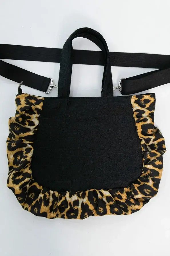 Уникальная дизайнерская сумка, созданная специально для поклонниц ярких образов и современных тенденций. Гармоничное сочетание двух тканей создает эффектный контраст: трендовый «Лео» на джинсе добавляет дерзости и современности, а классический чёрный цвет — легкость и элегантность летнего сезона. Внутри сумки 2 кармана: один на молнии и второй накладной. Ремень-стропа длиной 1.35 м съёмный на вращающемся карабине. Эта сумка — идеальный акцент к любому летнему или городскому стилю!