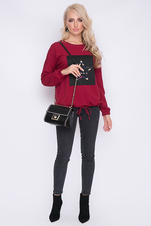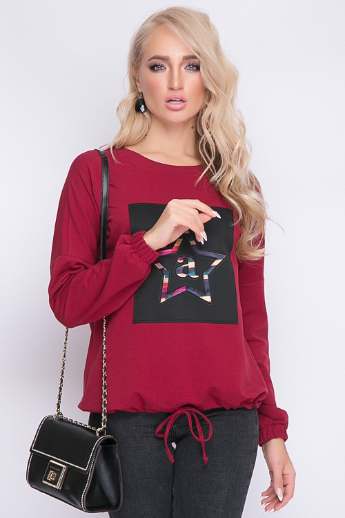 Свитшот из качественного футера,производства Турции со спущенным плечом,по низу пояс с кулиской.Украшен аппликацией.