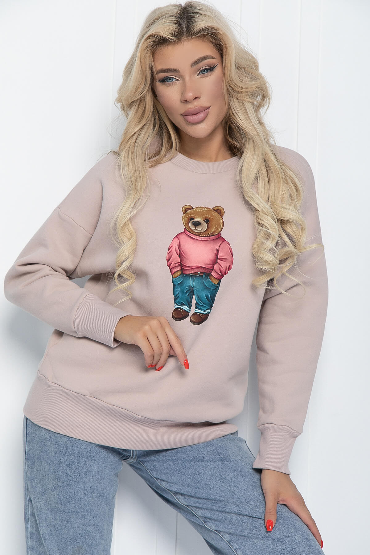 Невероятно мягкий и уютный базовый свитшот с милым принтом спереди создан для комфортных повседневных образов. Такой вариант отлично будет сочетаться с джинсами и лосинами. Имеет комфортный длинный рукав со спущенным плечевым швом. Крой свободный, на рукавах и по низу изделия широкий манжет.
