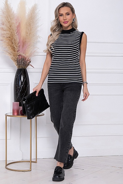 Топ из трикотажного полотна лапша в полоску(ткань производство Турция) с контрастной отделкой трикотажной рибаной.