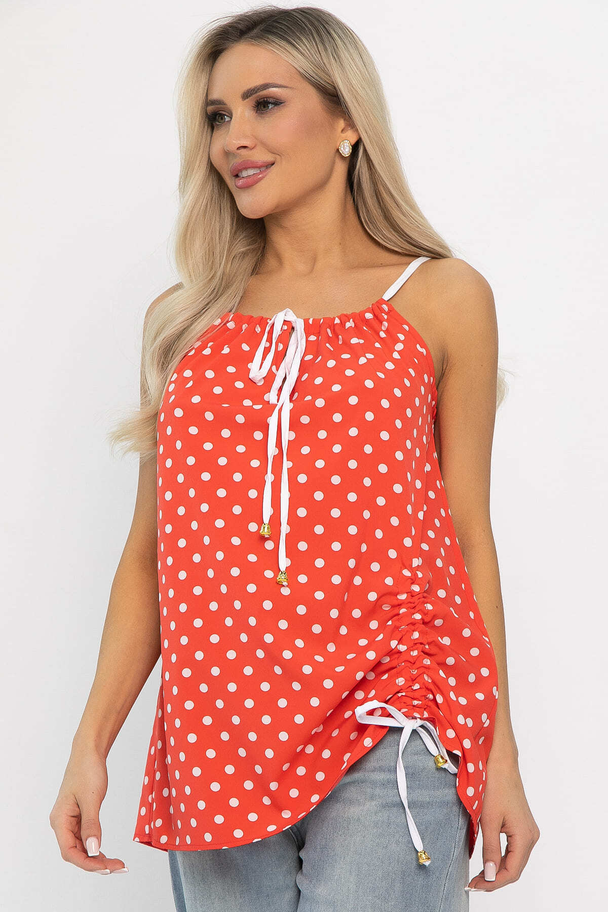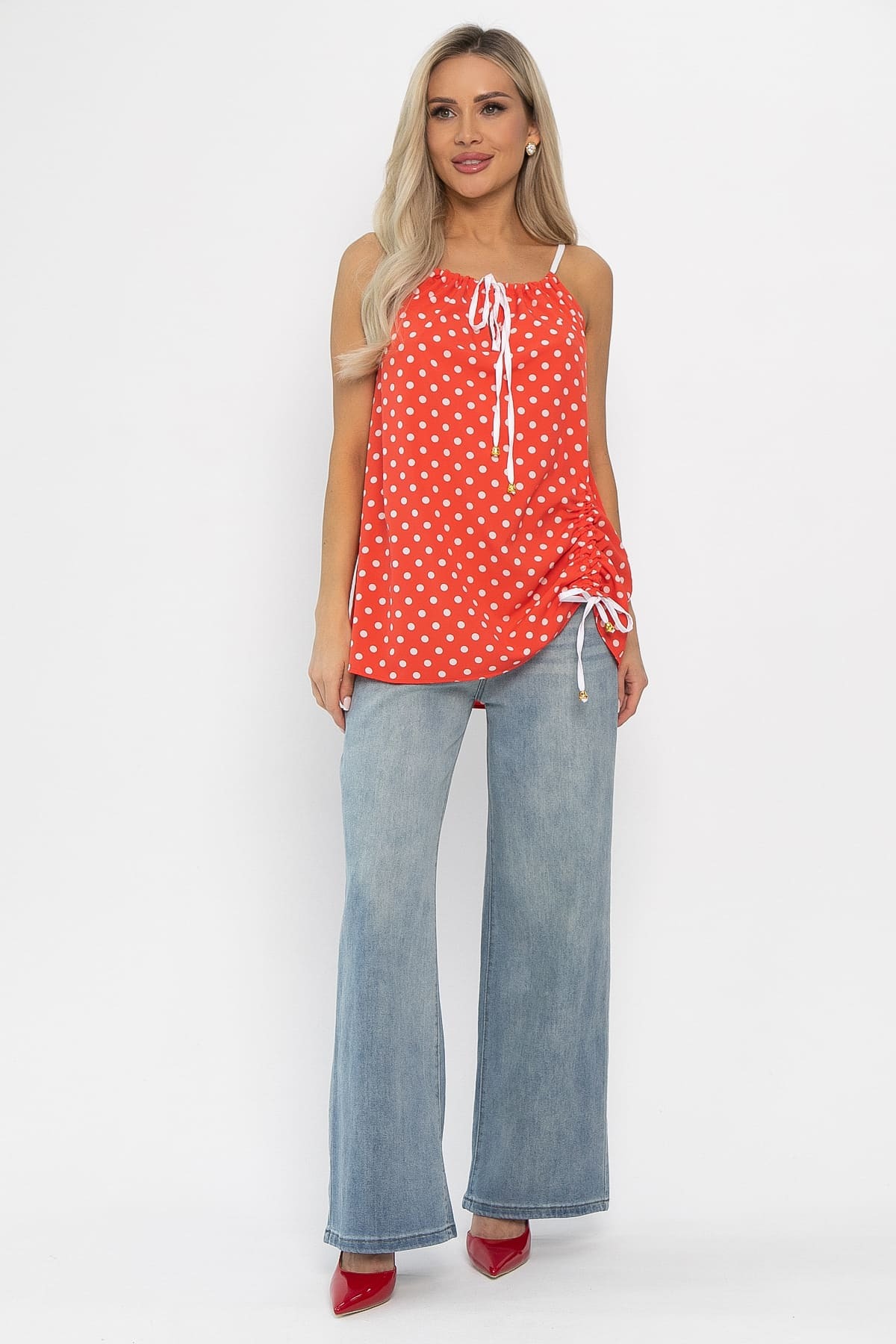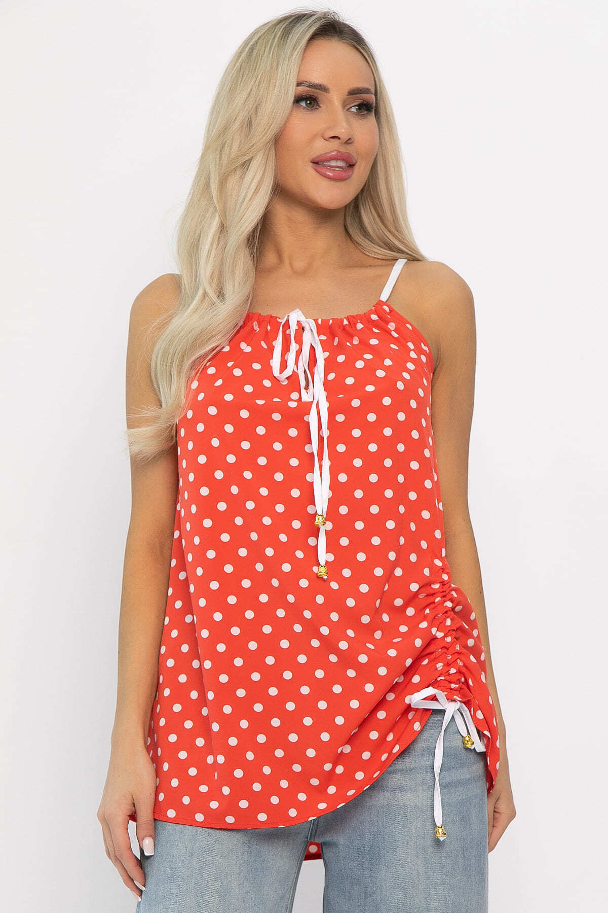 Летний топ с удлинённым кроем станет отличным выбором для отдыха. Он создаст лёгкий и стильный образ, который подчеркнёт вашу индивидуальность. Открытая горловина с регулируемыми завязками спереди обеспечивает комфорт и свободу движений. Особого внимания заслуживает оригинальный декоративный элемент слева внизу. Он позволяет слегка собрать ткань с одной стороны, добавляя образу изюминку. Наслаждайтесь свободой и удобством в нашем новом летнем топе!