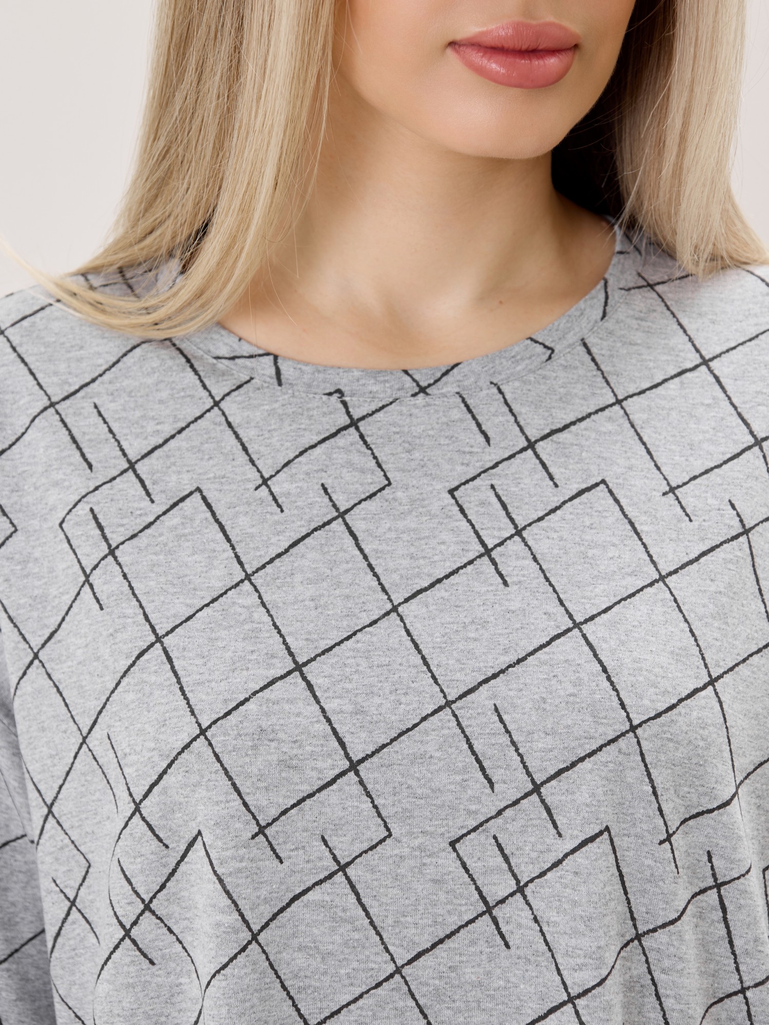 Туника молодежная из трикотажного меланжированого полотна «кулирка» прямого силуэта, с короткими втачными рукавами, горловиной овальной формы, обработанной притачной бейкой из основного материала.
